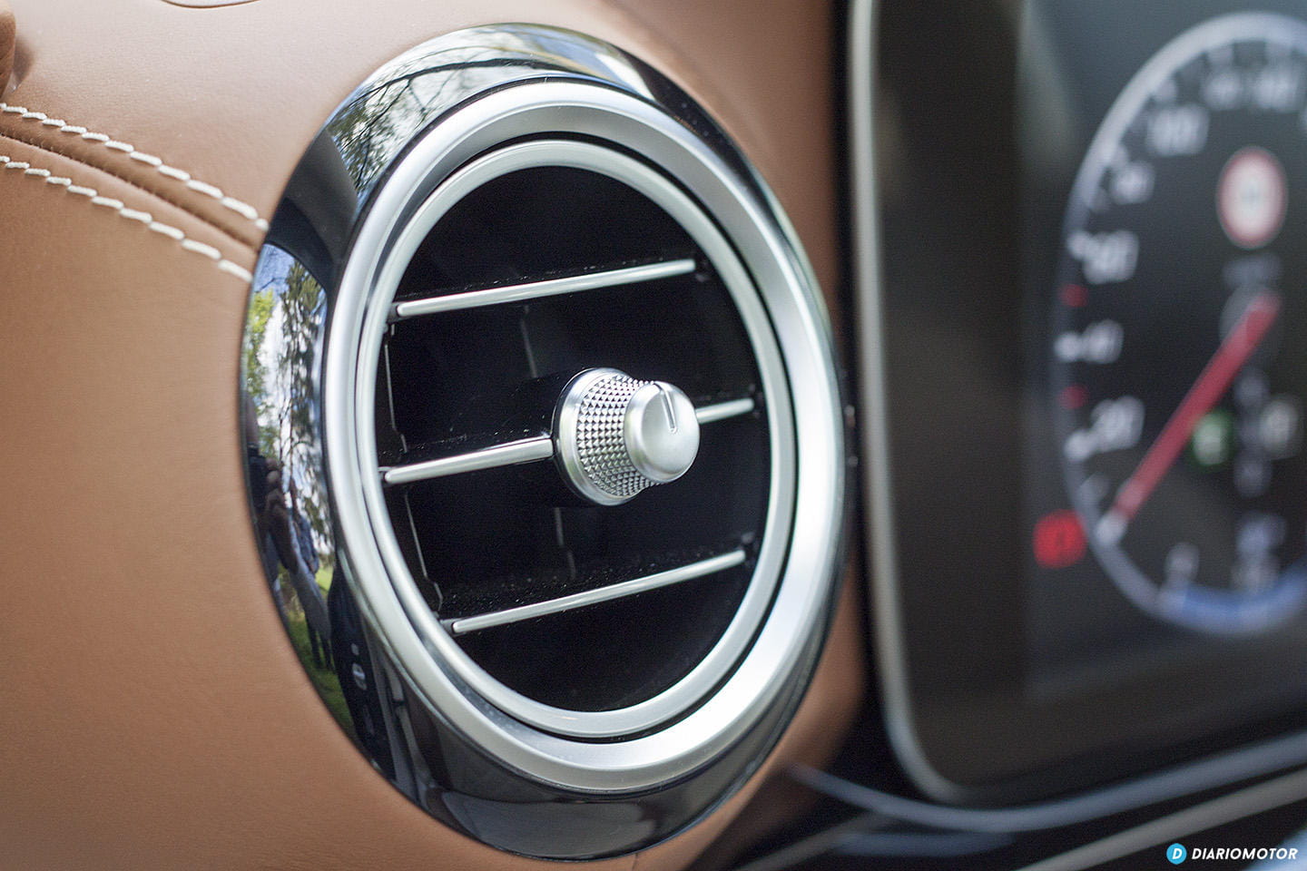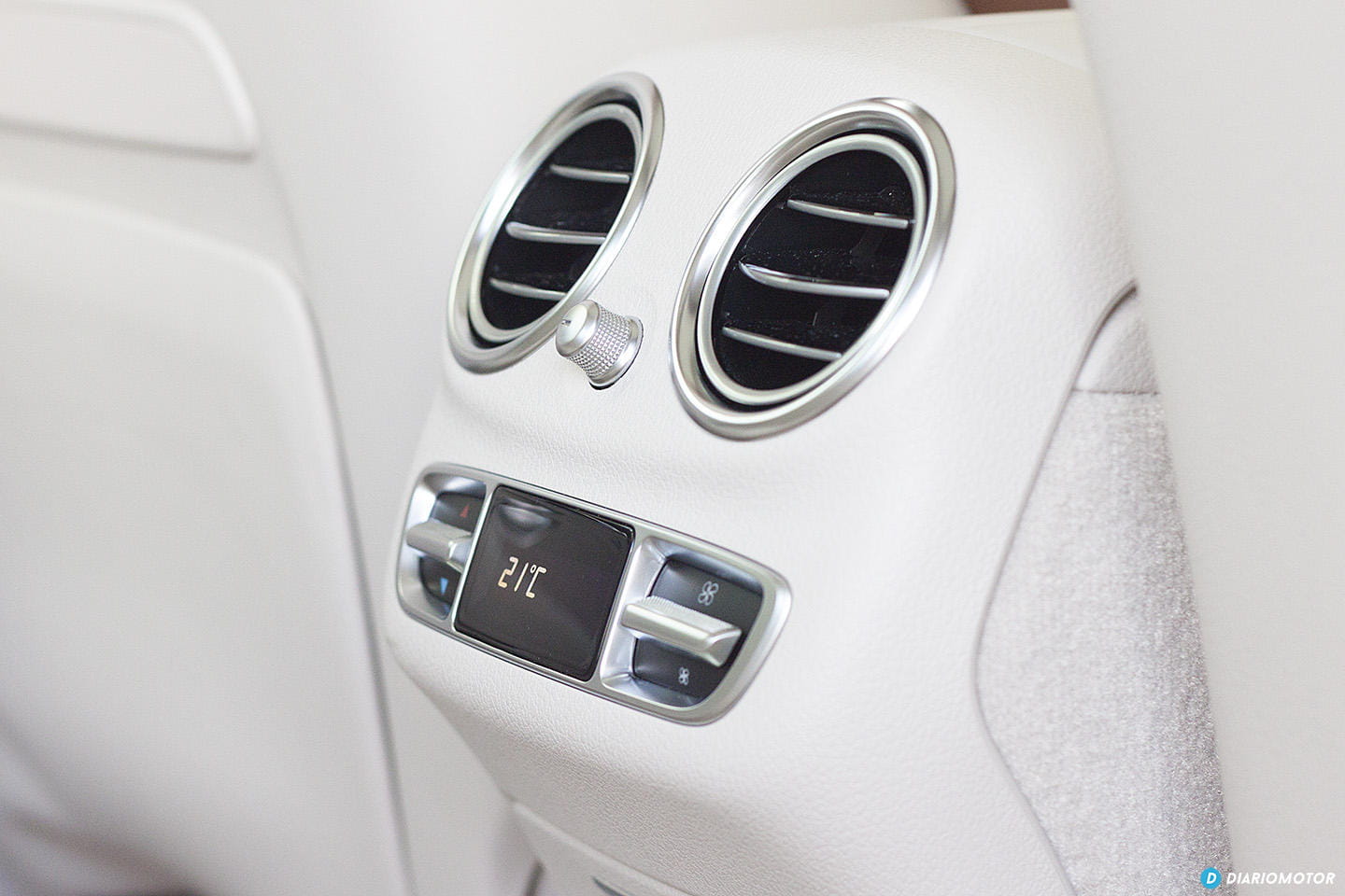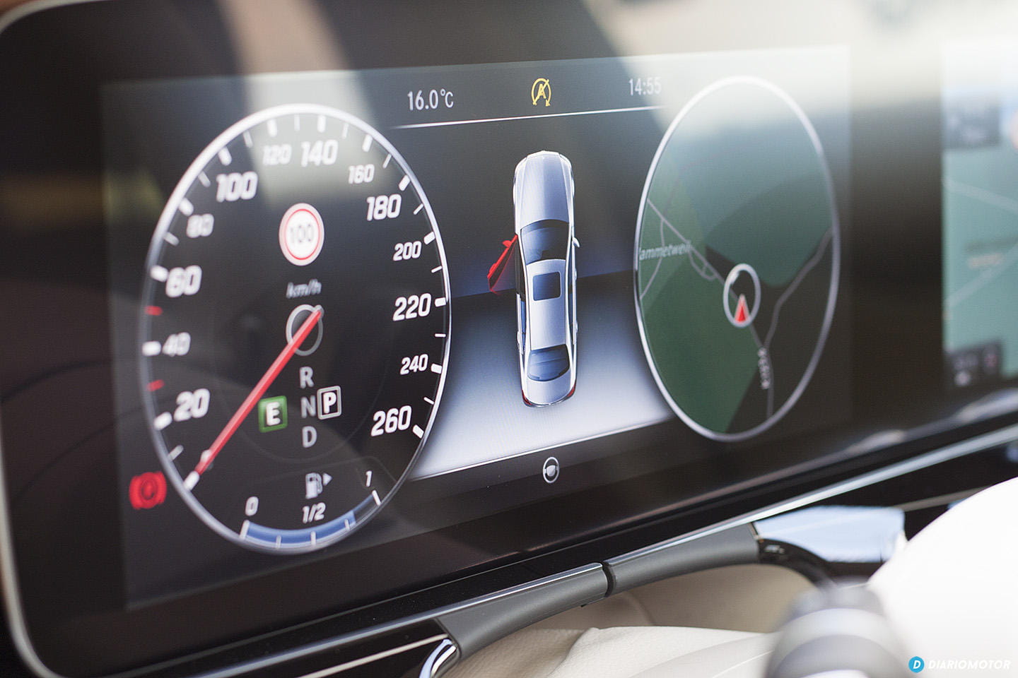 La unidad probada contaba con la suspensión más avanzada disponible, un sistema neumático ajustable en diversas posiciones que pretende ofrecer el máximo confort combinado con un perfecto control de las inercias. No lleva las cámaras de visión de la carretera que incorpora el Clase S, pero el mecanismo es similar.