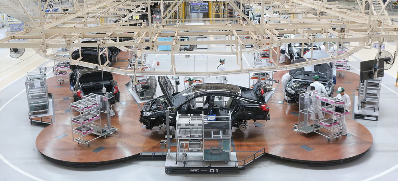 Pero, ¿y si esa no fuera la solución más óptima para fabricar un producto? ¿Y si existiera una alternativa más efectiva para fabricar un coche? Según Honda esa solución se llama línea ARC, un concepto basado en áreas de trabajo móviles en las que el operario se encarga de varias tareas.
