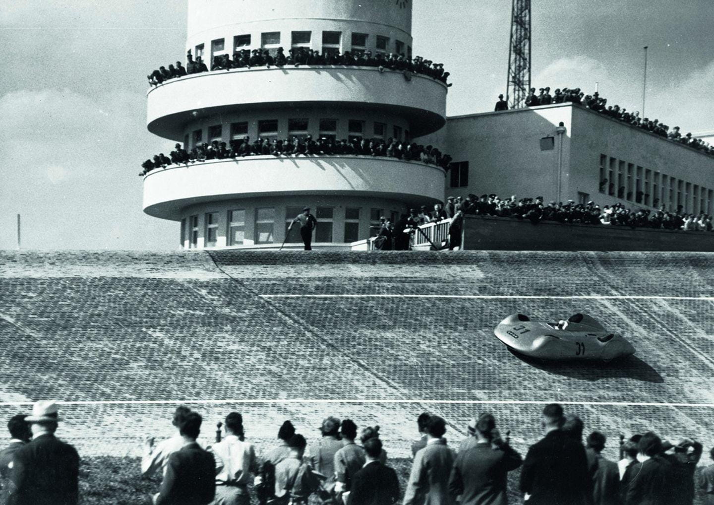 Años antes, el circuito de AVUS – dos largas rectas de 4 kilómetros – unidas por pequeños ovales en sus extremos ya había acelerado la sed de velocidad de Hitler. En 1934, un Hans Stuck a los mandos de un impresionante Auto Union Type A de 4,4 litros y carrocería carenada había logrado una velocidad media de 217,11 km/h en una hora, récord mundial. Mientras tanto, Rudolf Caracciola trataba de arrebatar con su Mercedes W25 sobrealimentado por compresor el récord mundial de velocidad en 5 kilómetros con una punta de 311,98 km/h.