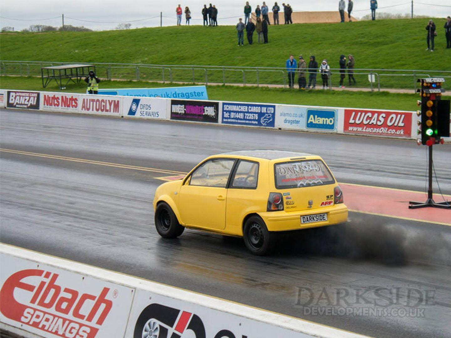 Si pensamos en un coche de carreras de aceleración – o drag racing – normalmente pensamos en un muscle car americano, como un Chevrolet Camaro, normalmente equipado con un enorme motor V8 y más de 1.000 CV de potencia. Muchos están sobrealimentados por compresores, o turbos. Desde luego, nadie pensaría en un SEAT Arosa como un buen coche de drag racing. Pero, ¿y si os dijera que este pequeñín desayuna Godzilla y merienda músculo americano? No sólo eso: está equipado con un motor 2.0 TDI bomba-inyector con más de 500 CV de potencia.