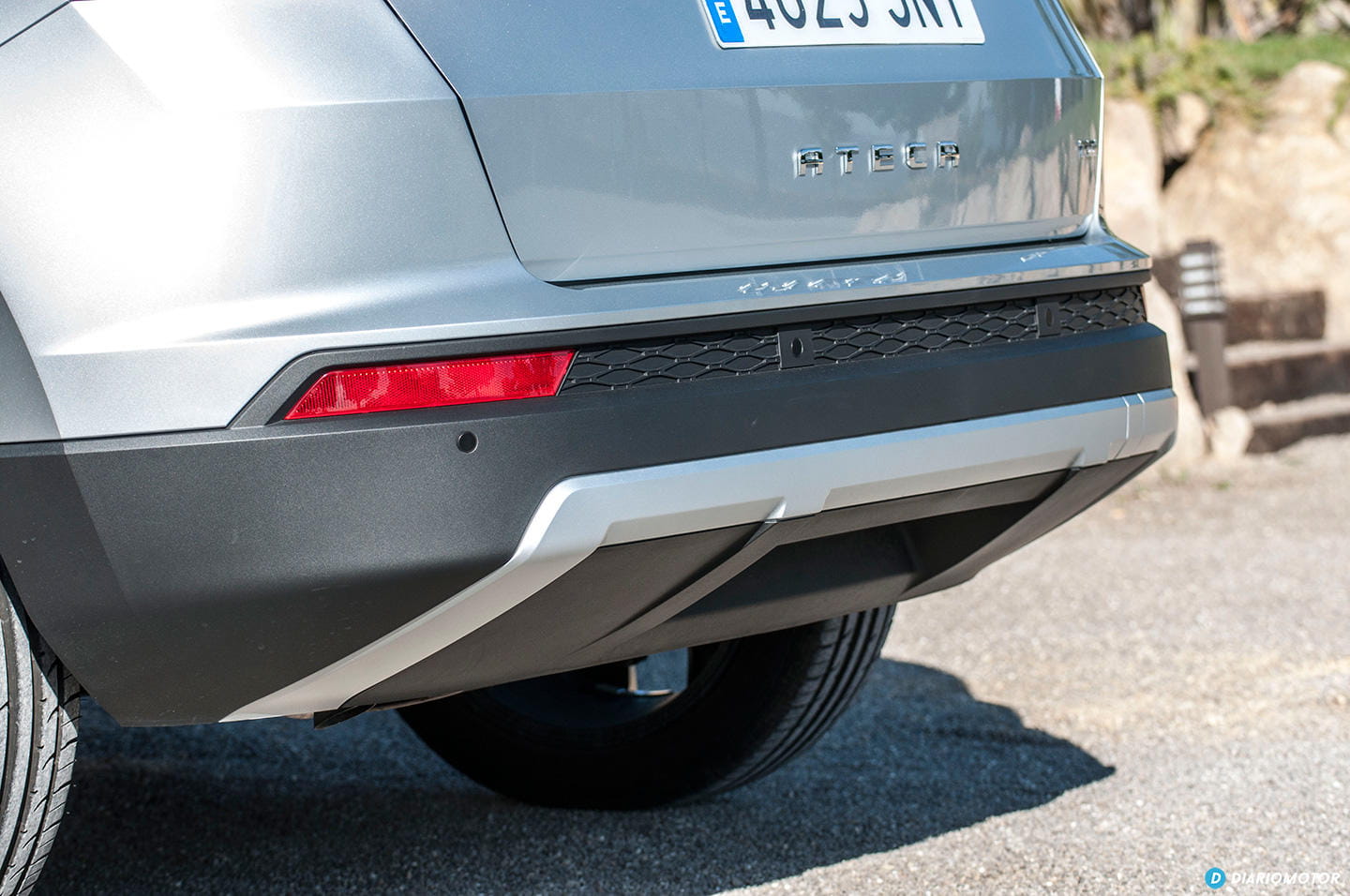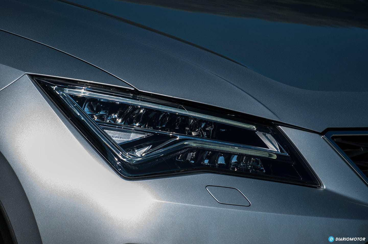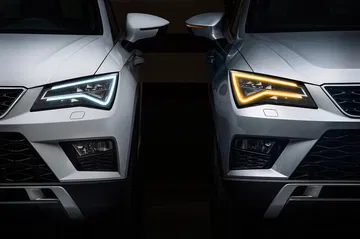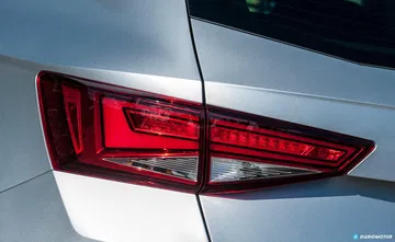 Del diseño del SEAT Ateca nos gustaría destacar algunos detalles, como el de su frontal afilado, y esa doble parrilla con entramado, o sus llamativos faros LED con un caprichoso diseño para la iluminación diurna, que es capaz de cambiar de color para lucir en un tono anaranjado y ejercer su función de intermitente para indicar la dirección que seguiremos en nuestros giros.
