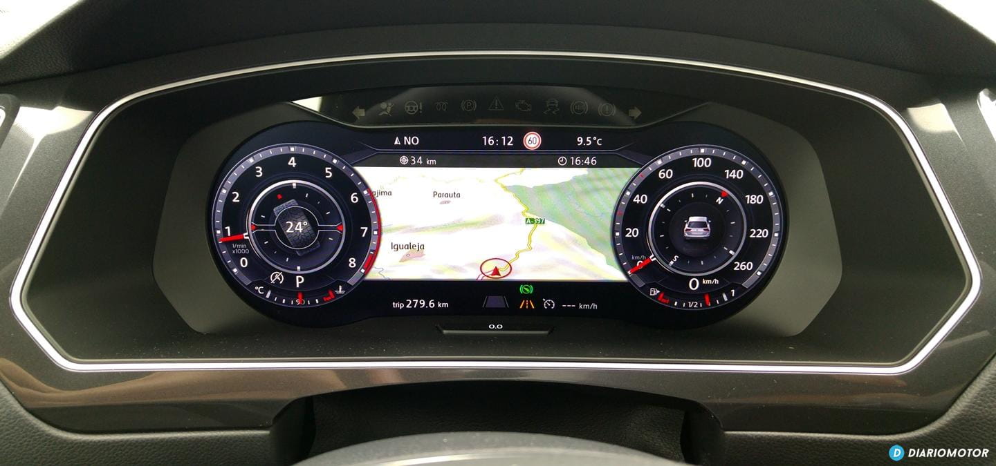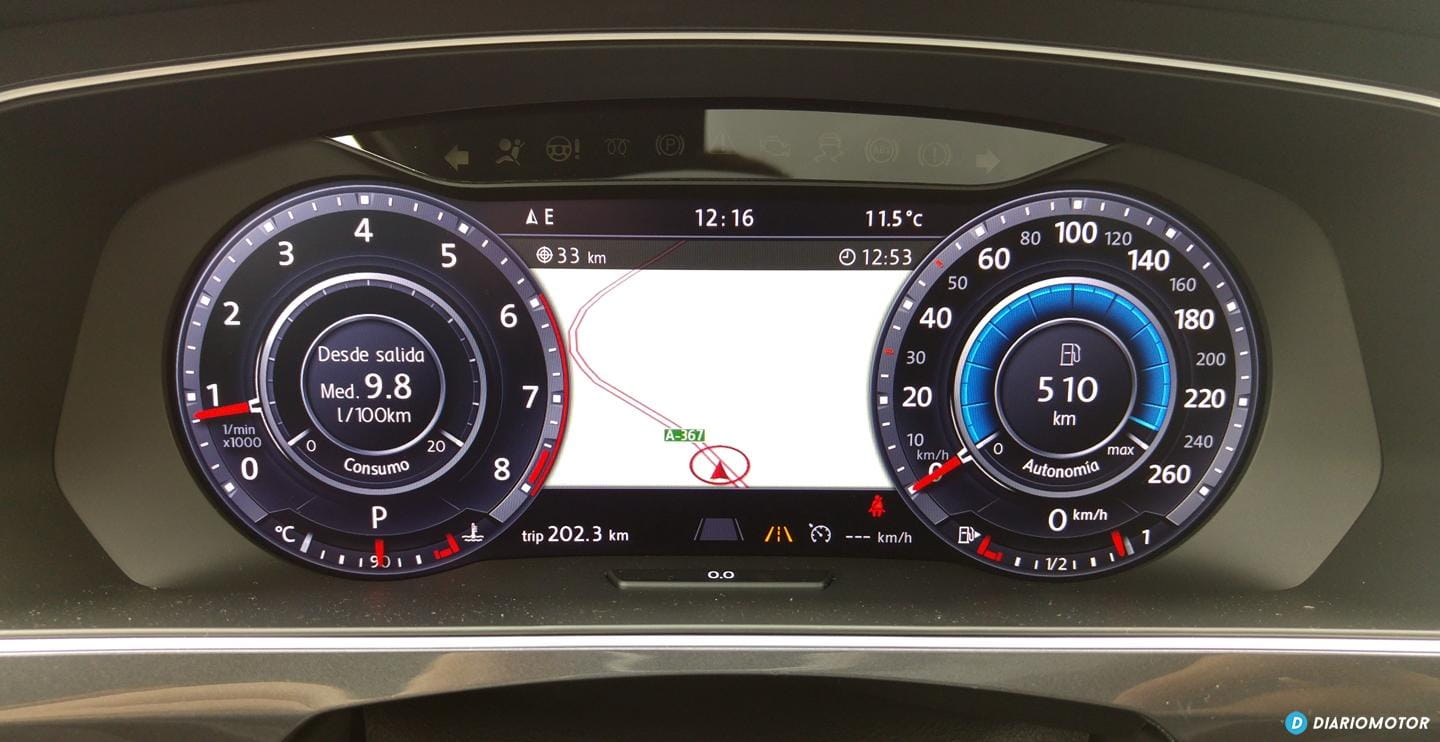 Como ya hemos comentado, en el interior el elemento más destacable es el cuadro de instrumentos digital «Volkswagen Digital Cockpit», un sistema muy recomendable por la cantidad de posibilidades que ofrece en tanto a información para el conductor. Gracias a multitud de ajustes y menús, el conductor puede conseguir un diseño de cuadro de instrumentos totalmente personalizado, contando además con el sistema Head-Up Display como complemento de seguridad. Especialmente al seguir rutas a través del navegador, el cuadro de instrumentos digital se muestra como un complemento muy interesante por el valor añadido que aporta.