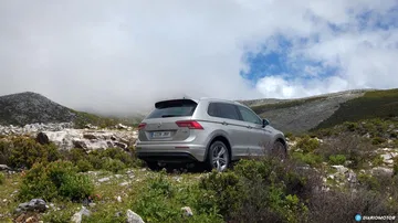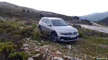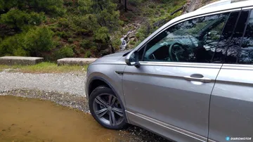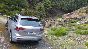 Probando caminos con grava, presencia de barro y grandes socavones con agua, en el interior no se nota ninguna pérdida de tracción y el confort es alto. Pero la cosa cambia al afrontar un repecho de piedra suelta y vegetación mojada. Seleccionando el modo off-road, el Volkswagen Tiguan hace más evidente como trabaja con las 4 ruedas, oscilando levemente la carrocería y lanzando alguna rueda que pierde adherencia. El trabajo no es fácil, pero finalmente es capaz de salir de la prueba. Aquí, el problema no ha estado en las capacidades off-road, sino en los neumáticos usados.