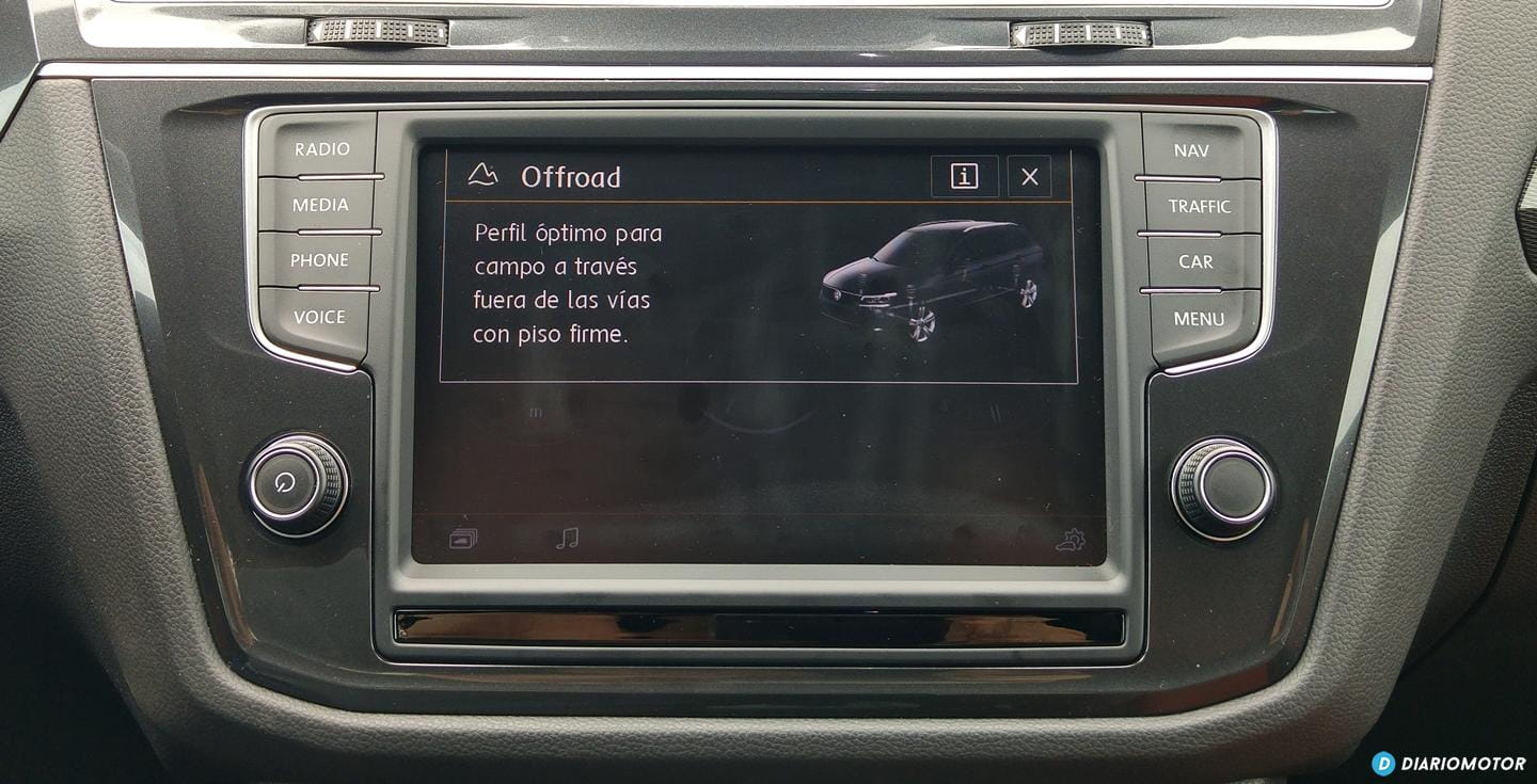 El Volkswagen Tiguan ejecuta los cambios de programa de forma rápida, no hay cambios perceptibles salvo los que indican el selector giratorio del 4MOTION Active Control y los mensajes del sistema multimedia. Como apunte, tanto el sistema multimedia como el cuadro de instrumentos ofrecen información ampliada sobre off-road, permitiendo conocer datos de inclinación de la carrocería, altitud, ángulo de giro de la diracción o brújula.