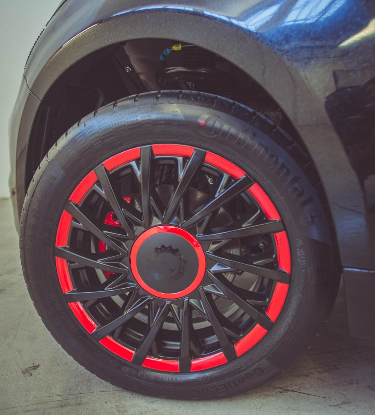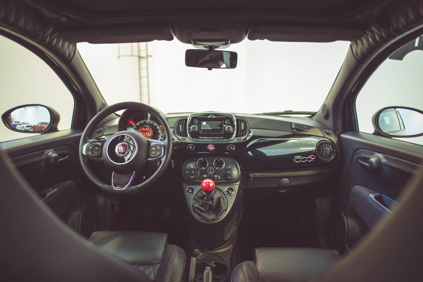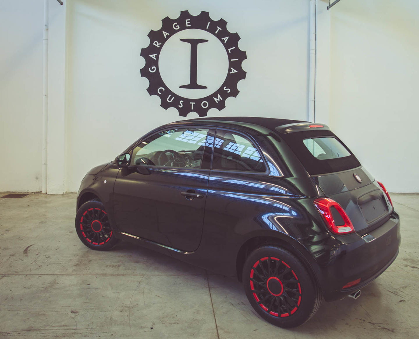 Un simple vistazo a su aspecto exterior ya deja claro que no estamos ante un 500 corriente. Para la carrocería se ha utilizado pintura negra con toques de plata brillante, creando un efecto de lo más resplandeciente según dicen en Garage Italia Customs, a pesar de que las fotos no hagan justicia. Se ha añadido un vinilo negro mate en toda la carrocería situado en posición longitudinal. El punto más excéntrico lo ponen las terminaciones en rojo de la rejilla delantera y las llantas y, sobre todo, los faros delanteros y traseros rodeados por cristales de Swarovski.