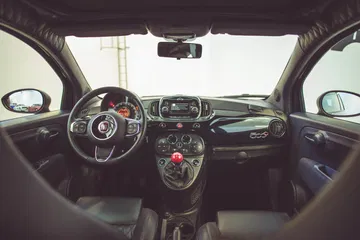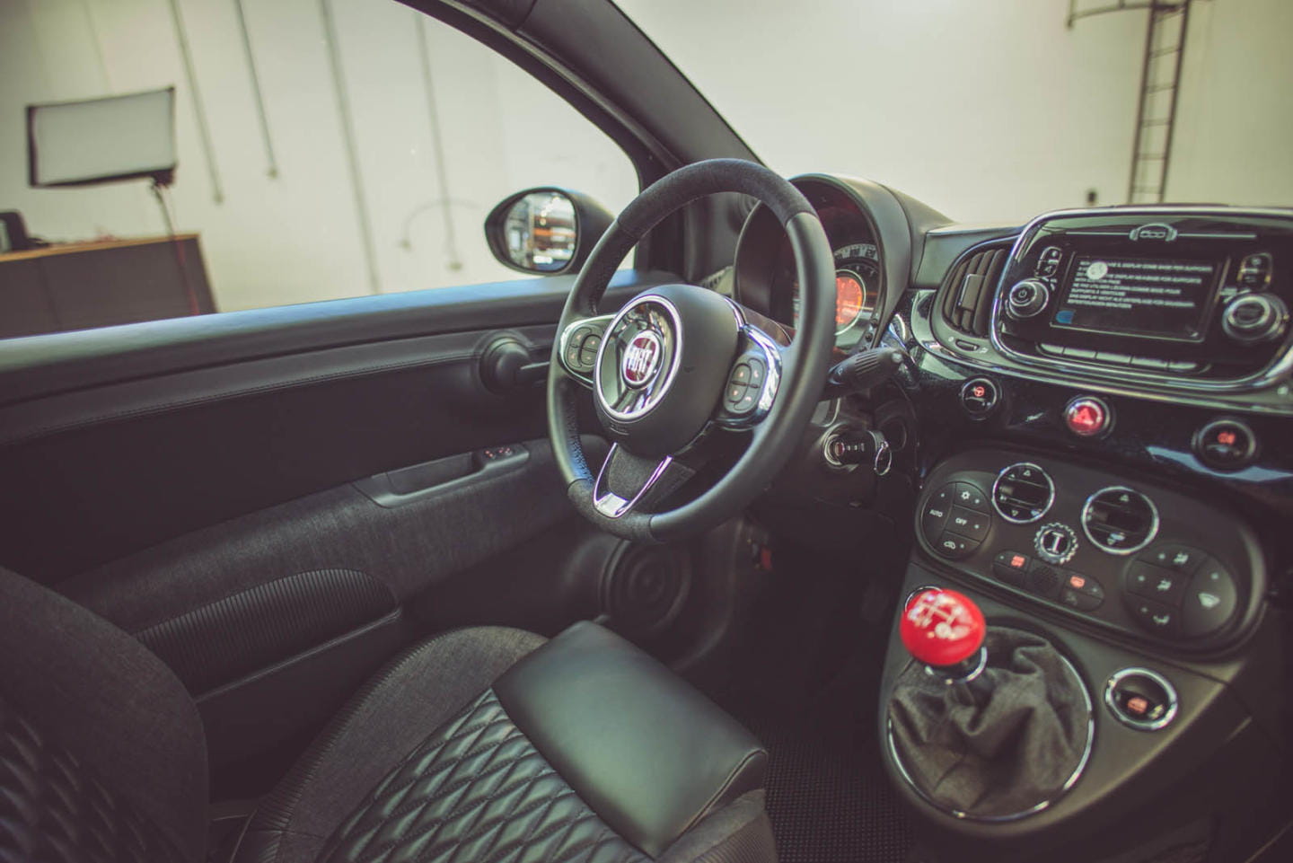En el interior nos encontramos varias referencias al mundo de la moda. Así, los paneles de las puertas, parte del volante y los mullidos de los asientos están recubiertos en denim. Los asientos van tapizados en un cuero cuyo origen es el mismo que el utilizado en las cazadoras de cuero de Diesel. En el reposacabezas se encuentras bordadas RR, las iniciales de Rosso. El detalle más curioso nos lo encontramos en la zona de la guantera del acompañante, donde se encuentra una cremallera a modo puramente ornamental. Por último, el pomo de cambio va pintado en el mismo color rojo utilizado en las llantas.