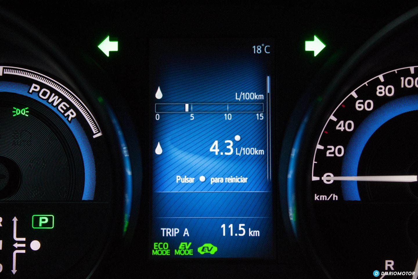Conducir un híbrido es en ocasiones un juego, buscando recorridos en los que sea más sencillo aprovechar la energía acumulada en la batería – hasta un máximo de 2-2,5 km en llano a una velocidad de 30 km/h. Mientras mantengamos la aguja del potenciómetro en «ECO», estaremos siendo eficientes. Si nos vamos a «Power», estamos pisando demasiado fuerte el acelerador. Si convertimos la eficiencia en un juego, lograremos consumos de escándalo. Sí, competir contra nosotros mismos con un híbrido puede resultar divertido.