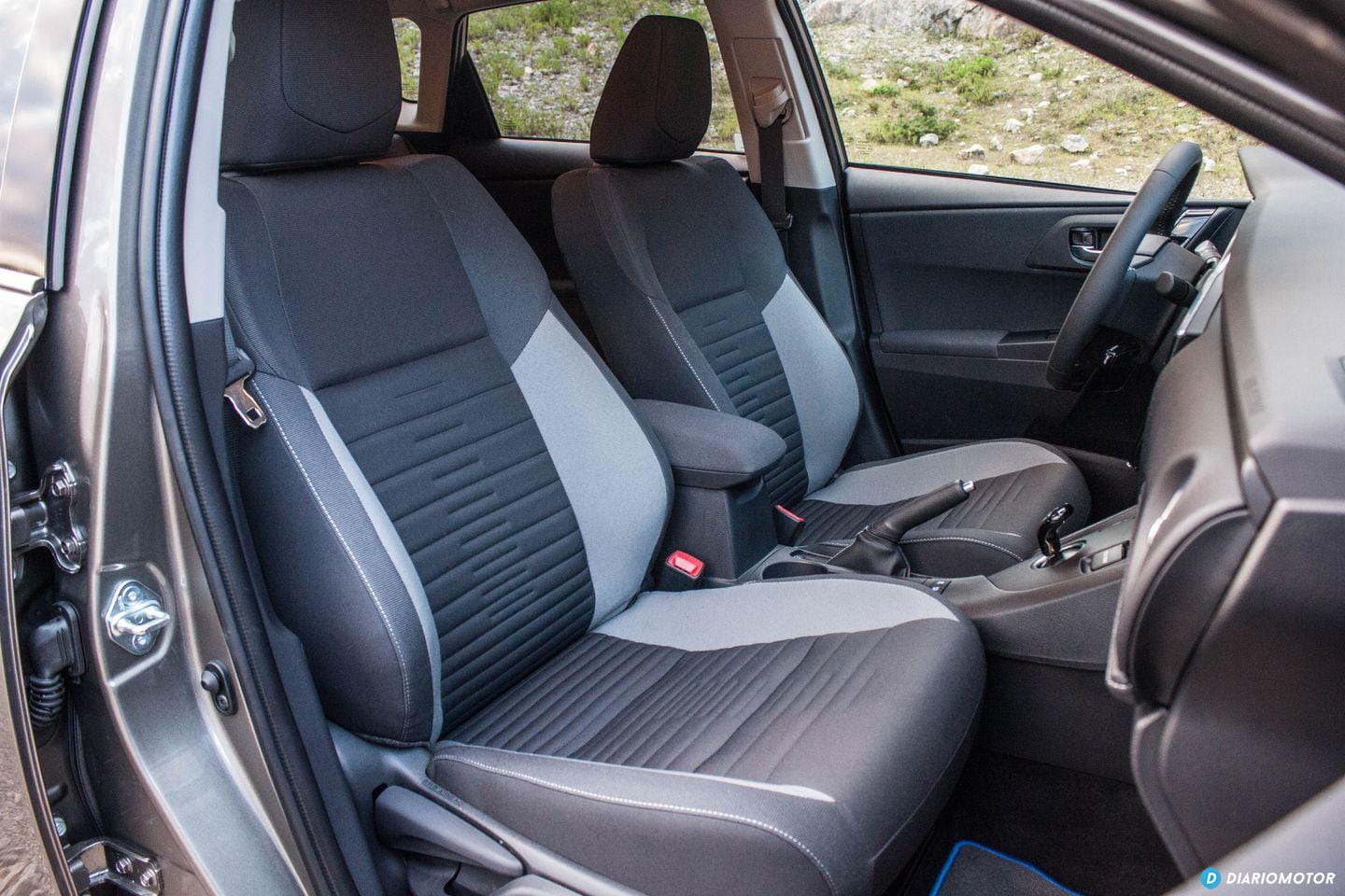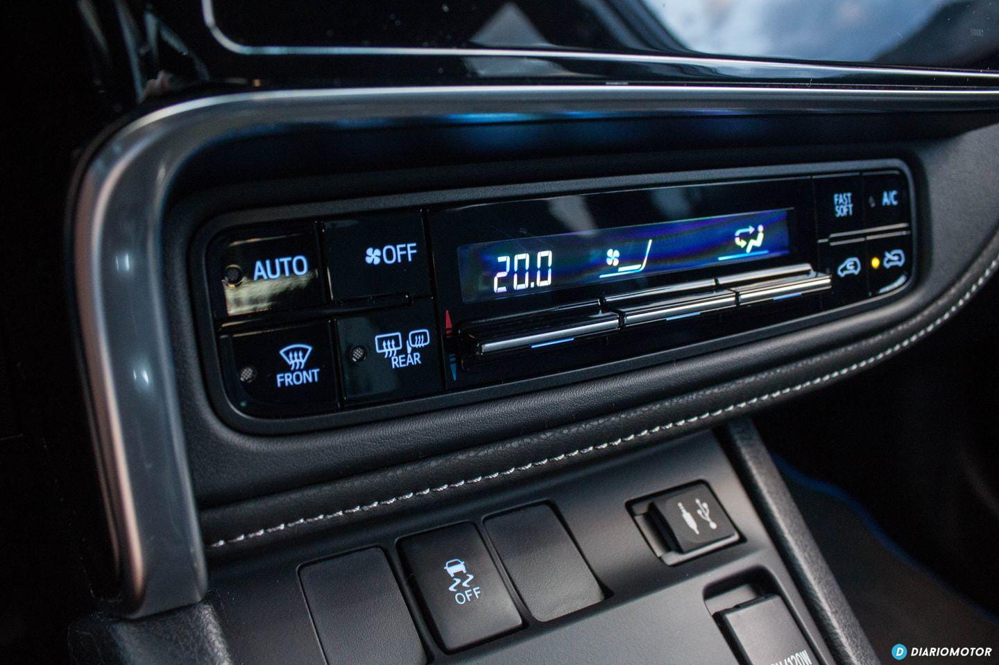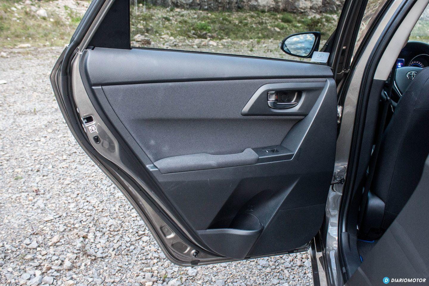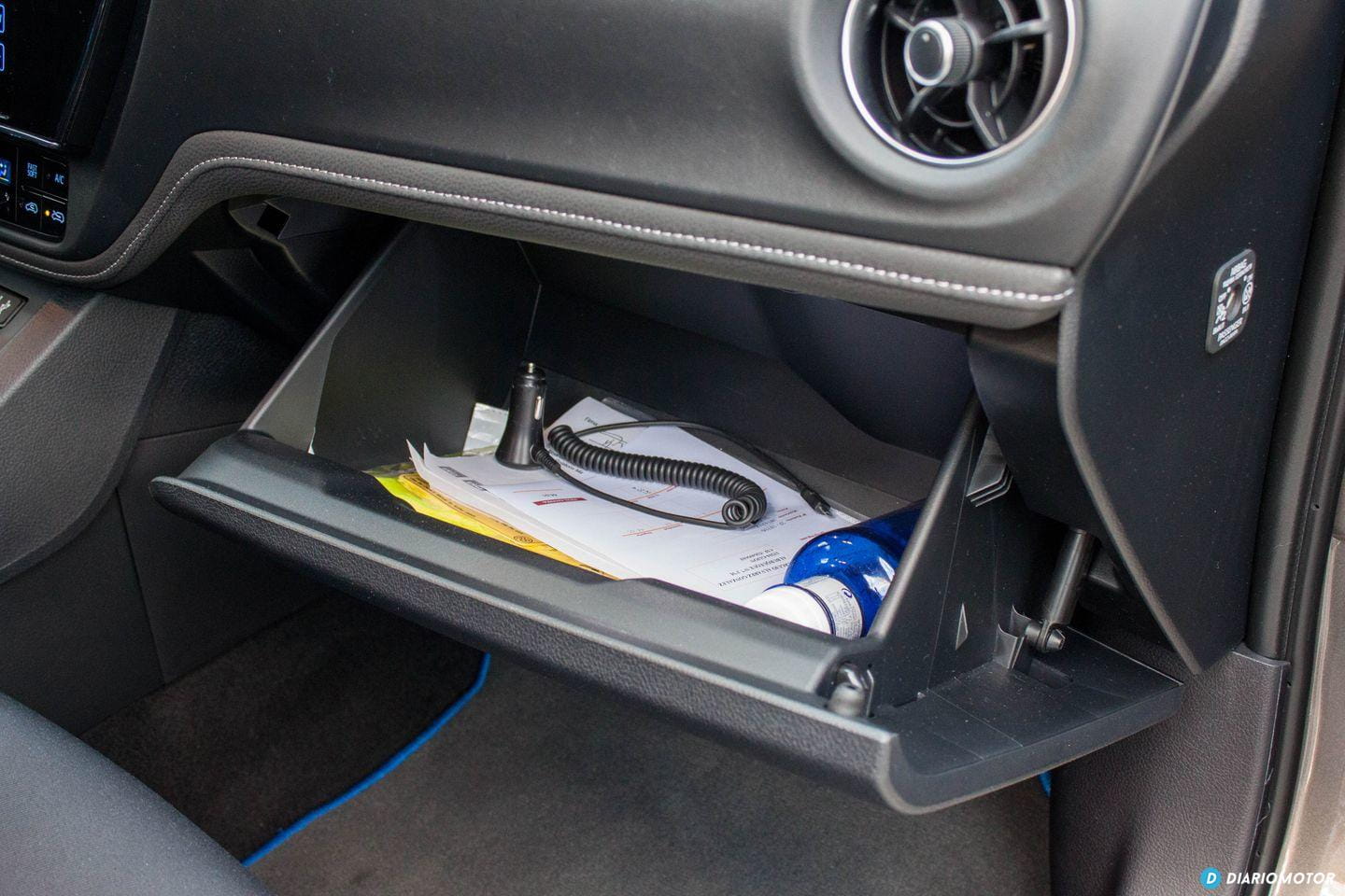 Sí me quejo del acabado Piano Black de la consola central, que atrapa el polvo y la grasa de nuestros dedos con demasiada eficacia. Con todo, la ausencia de botones físicos en el sistema de infoentretenimiento Toyota Touch 2 & Go – a pesar de no ser la opción más lógica en términos de háptica y usabilidad – le ha conferido al habitáculo un aspecto más moderno y tecnológico. La guantera es grande – aunque no está iluminada o refrigerada – y en todas las puertas hay capacidad para botellas de hasta 1,5 litros.