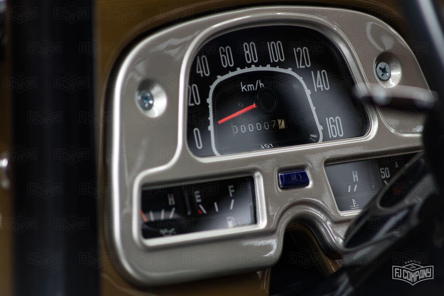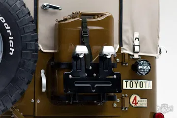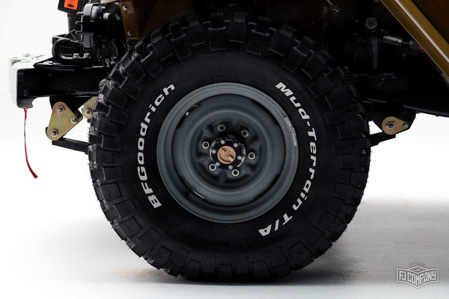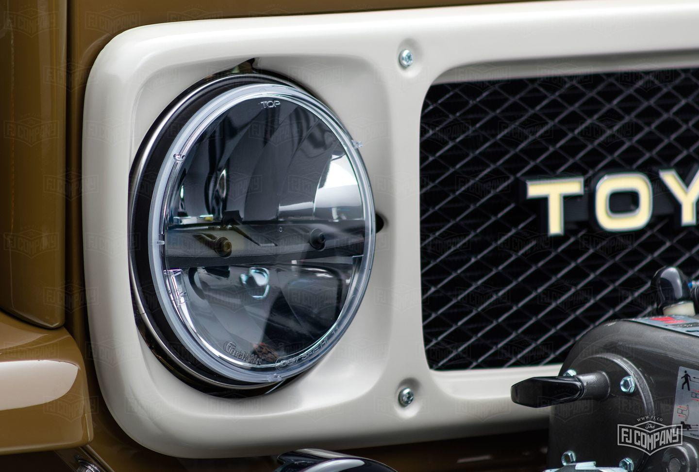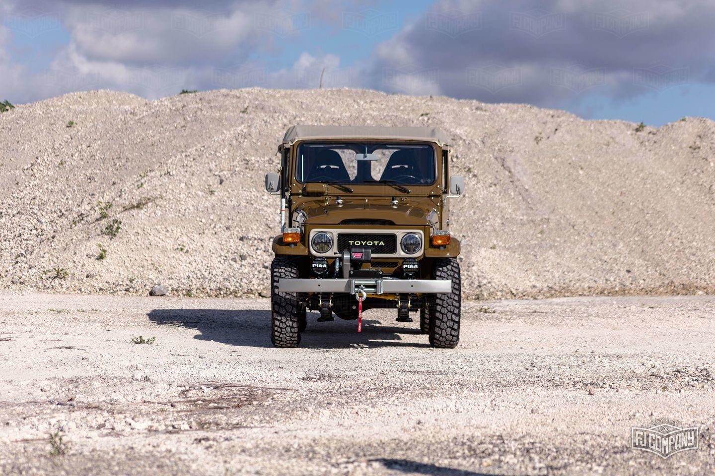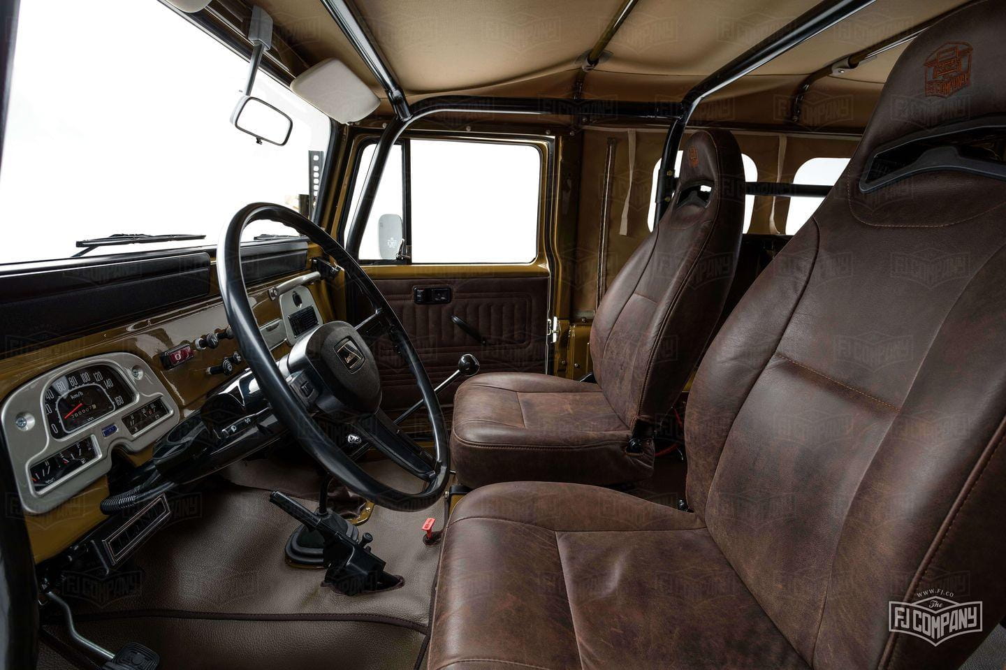 El motor es realmente un motor nuevo, y salen tan limpios de The FJ Company que se podría comer sobre la tapa de válvulas. Además, han instalado una nueva jaula antivuelco, una caja de cambios más moderna de cinco relaciones e iluminación LED, tanto para las luces de cruce como para las luces todoterreno del frontal. El exterior del coche fue también restaurado, y pintado en color Olive 637, un tono oficial de Toyota que además encaja a la perfección con los tonos naturales del estado de Arizona, donde este Land Cruiser vivirá.