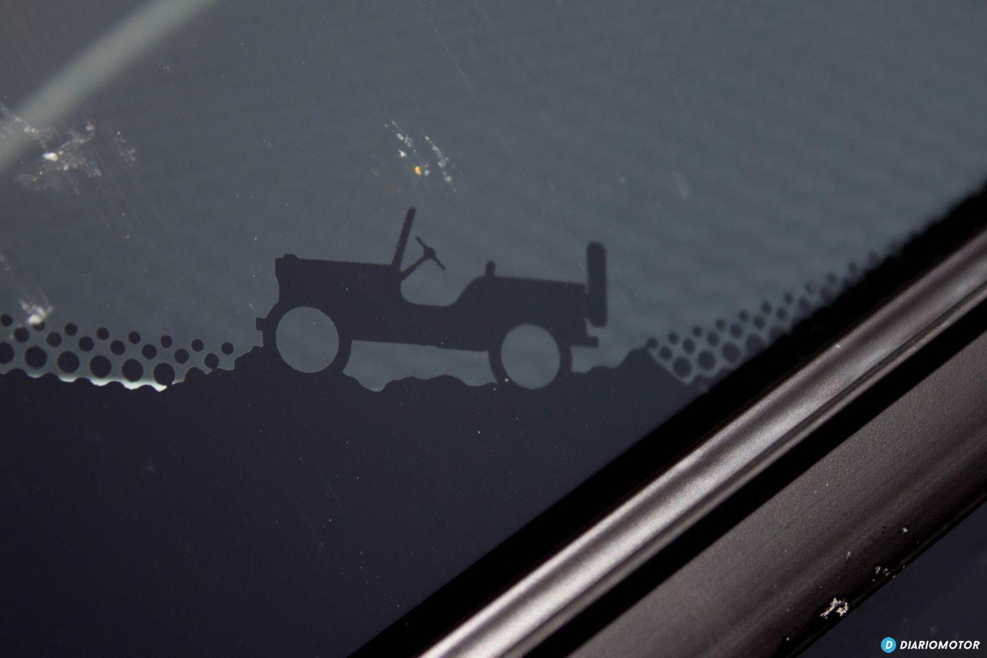 Un pequeño Jeep de los años 40 trepa por el marco del parabrisas. Otro detalle que puede pasar inadvertido, aunque haya sido introducido a propósito. Otros vehículos del Grupo FCA también tienen detalles parecidos.