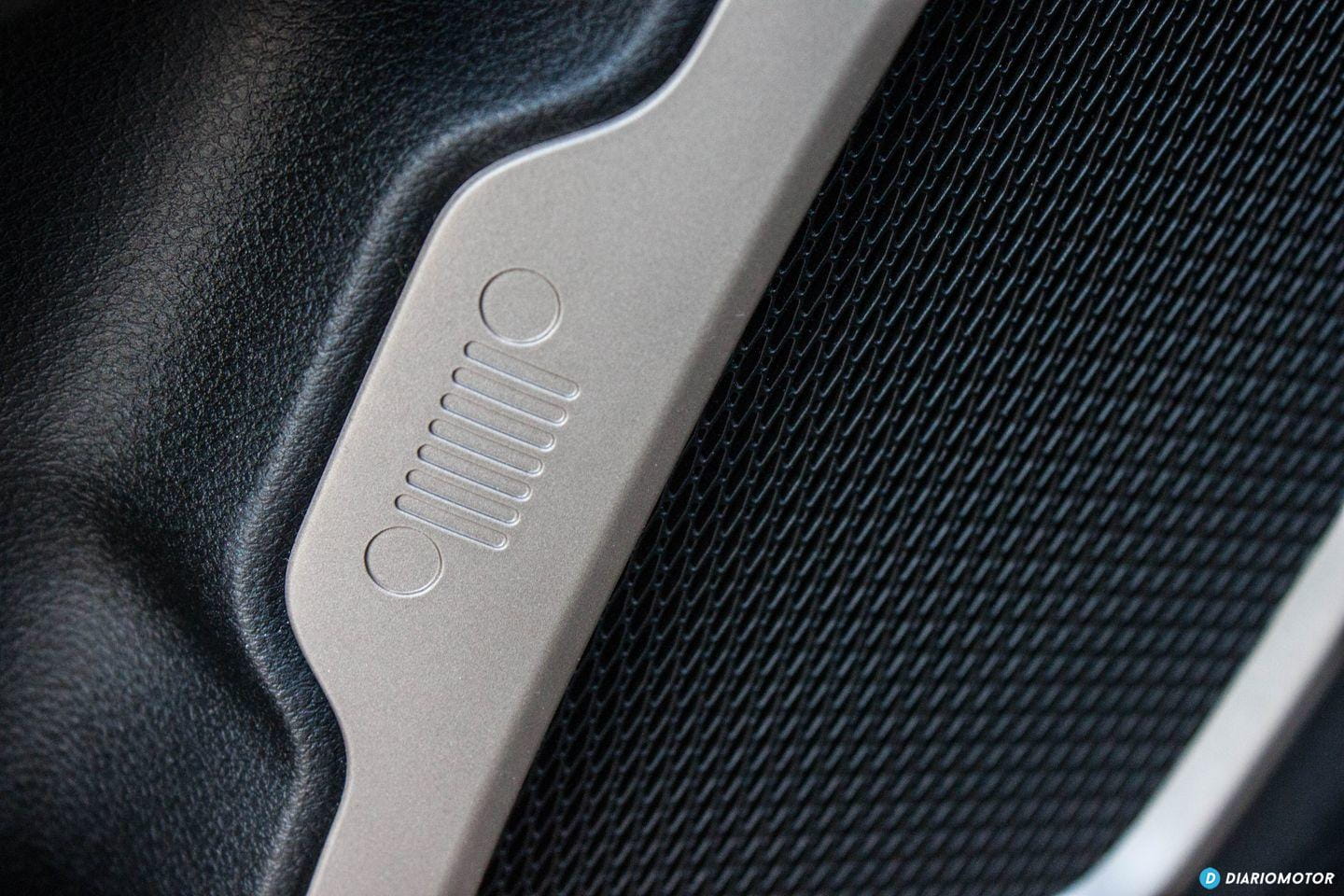 En la parte interior del portón del maletero – grabada en el plástico que la forra – encontramos de nuevo la calandra de Jeep.