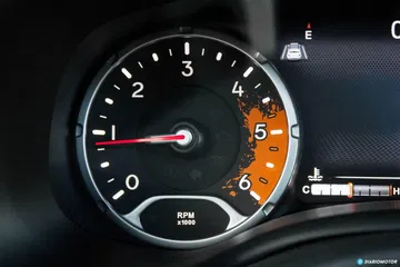 La zona roja del cuentavueltas es una salpicadura de barro, teñida de color naranja. Es el mismo color que rodea a los emblemas de la marca y el modelo.
