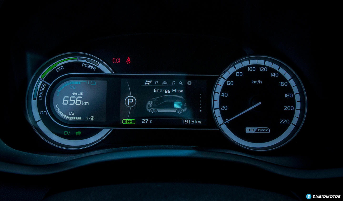 Como ya os decíamos anteriormente, el Kia Niro no cuenta con modos de conducción al uso. Eso tiene sus pros y sus contras. Con el selector del cambio en automático, el Kia Niro trabaja en lo que la marca denomina como modo ECO. Un modo en el que se busca maximizar el consumo, pero como ya os decíamos dista mucho de mostrarnos las verdaderas prestaciones de este coche. En ese modo, además, la dirección cuenta con un tarado muy suave, excesivamente blando.