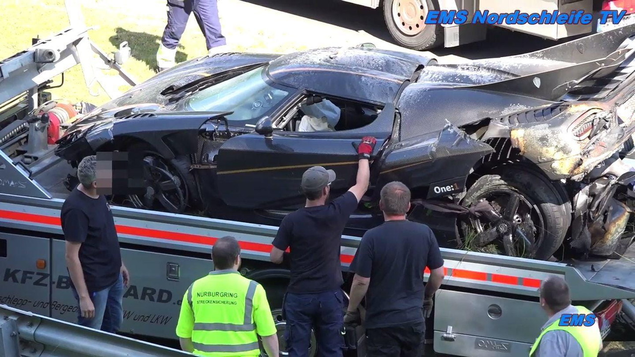 Las llantas de fibra de carbono del coche yacen partidas, y tanto zaga como frontal han sido parcialmente destruidas. Por fortuna, el monocasco del carísimo deportivo permanece intacto, y ha salvado la vida al piloto. El piloto fue evacuado al hospital tras el accidente – es el protocolo en los «trackdays» de industria – del que se le dio el alta a las pocas horas sin lesiones. Lo que no parece tan claro es qué ocurrió para que el One:1 impactase tan fuertemente contra las protecciones del circuito.