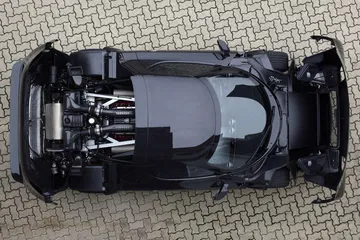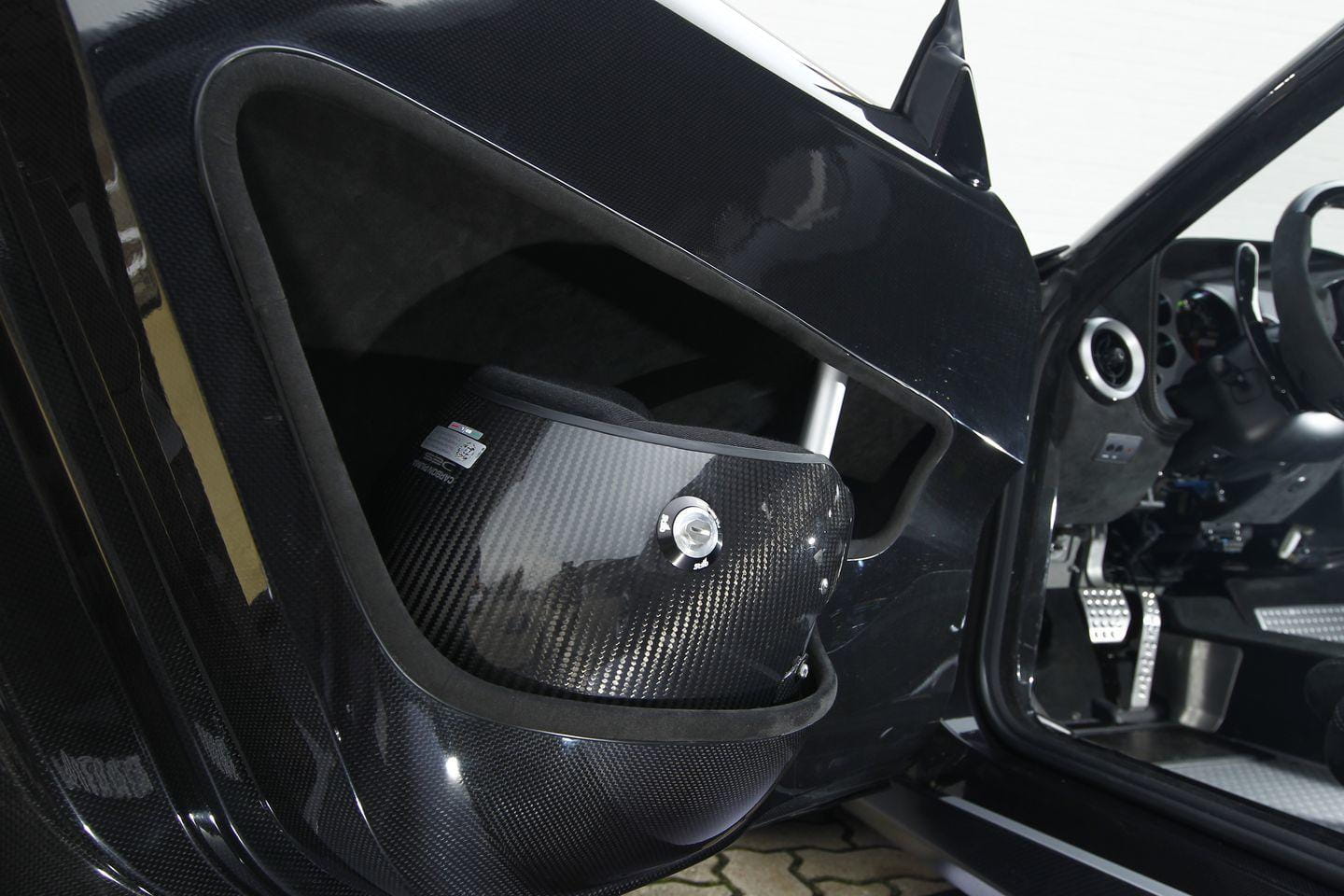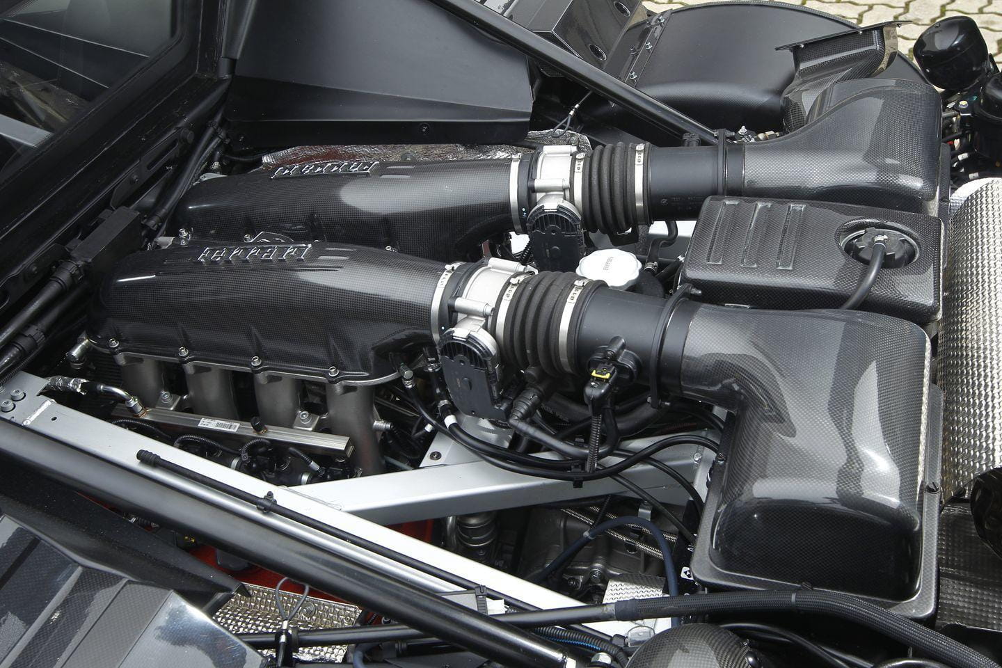 Monta suspensión adaptativa ZF Sachs con muelles Eibach y frenos cerámicos Brembo de alto rendimiento, también sacados del catálogo de piezas de Ferrari. En el eje delantero los discos tienen un diámetro de 398 mm – abrazos pinzas de seis pistones – y en el eje trasero tienen un diámetro de 350 mm. Pensad en la potencia de frenado que ofrecían habida cuenta del ligero peso del coche. Los neumáticos son Dunlop Sportmaxx de gama alta con medidas 315/30 R19 en el eje trasero y 265/30 R19 en el eje delantero.