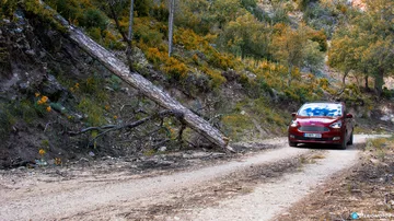 Pronto la carretera se torna camino, el polvo empieza a recubrir el coche y las suspensiones que kilómetros atrás sentenciaban con firmeza las curvas se encargan ahora de absorber el impacto de las piedras del camino. De nuevo con un agradable resultado.