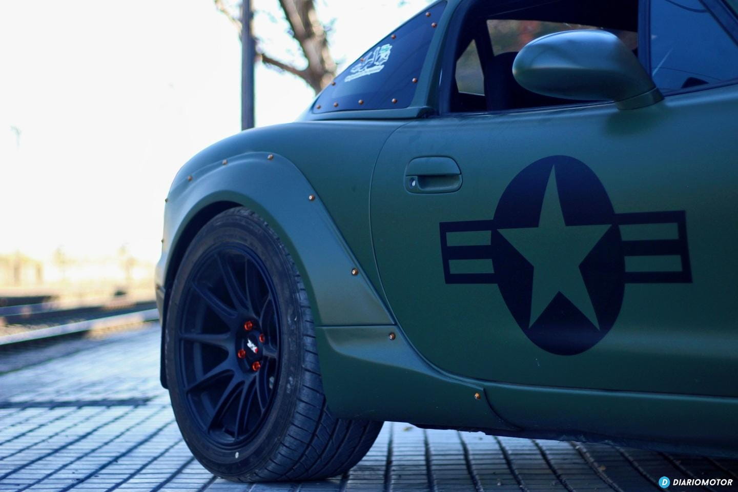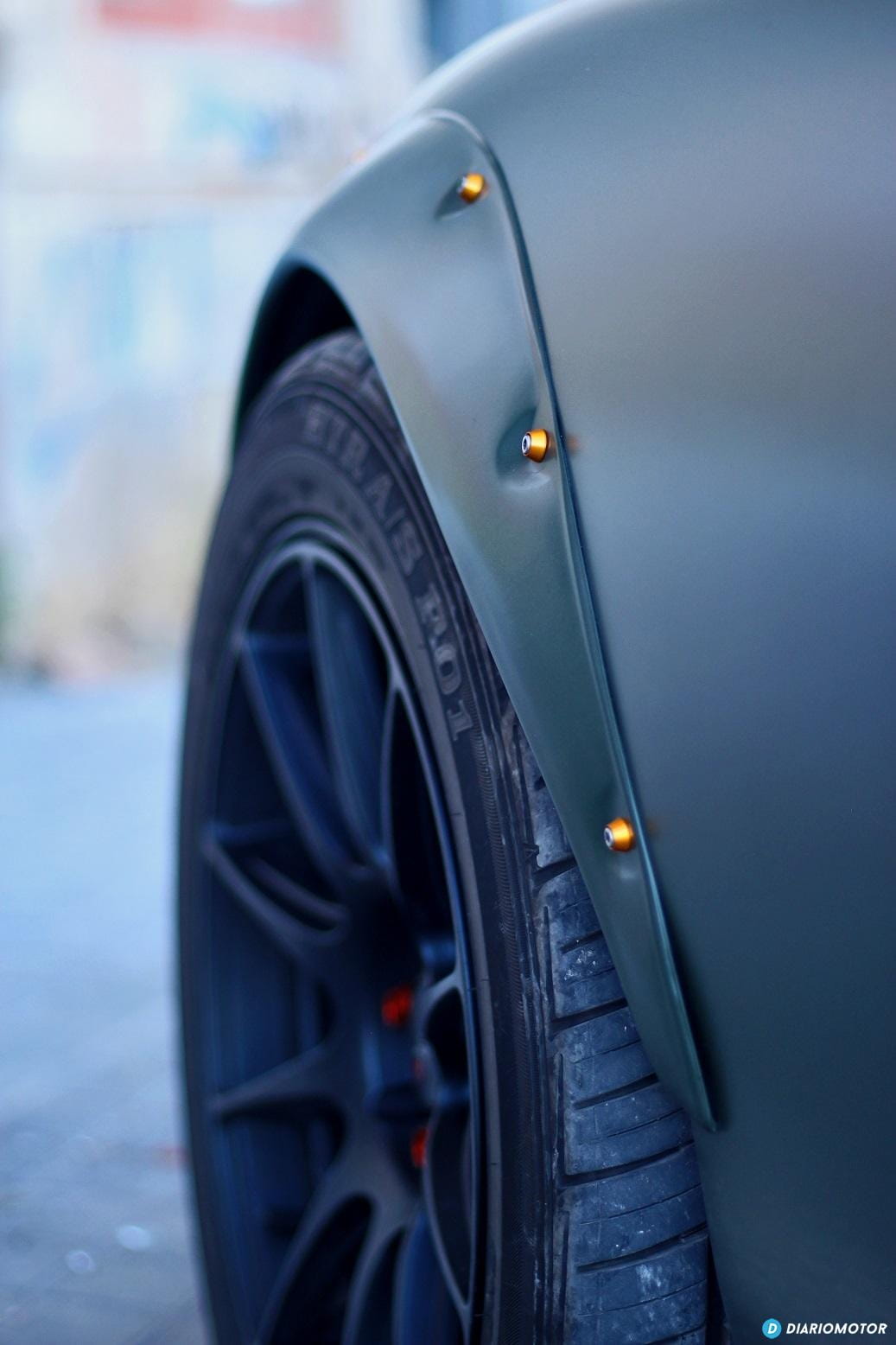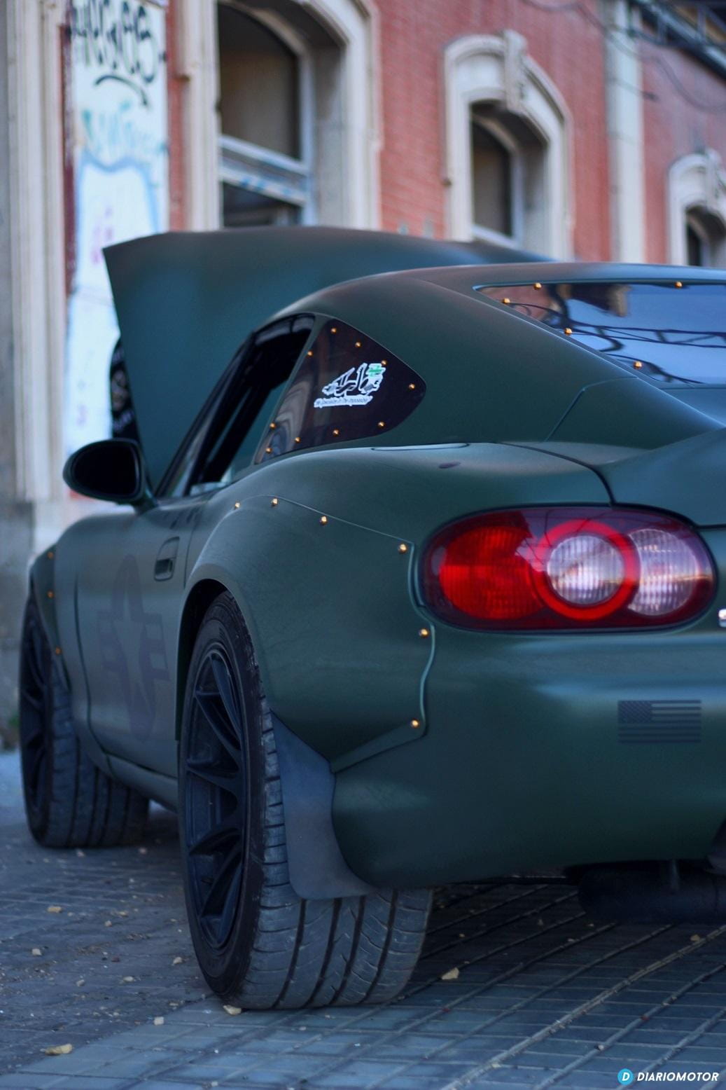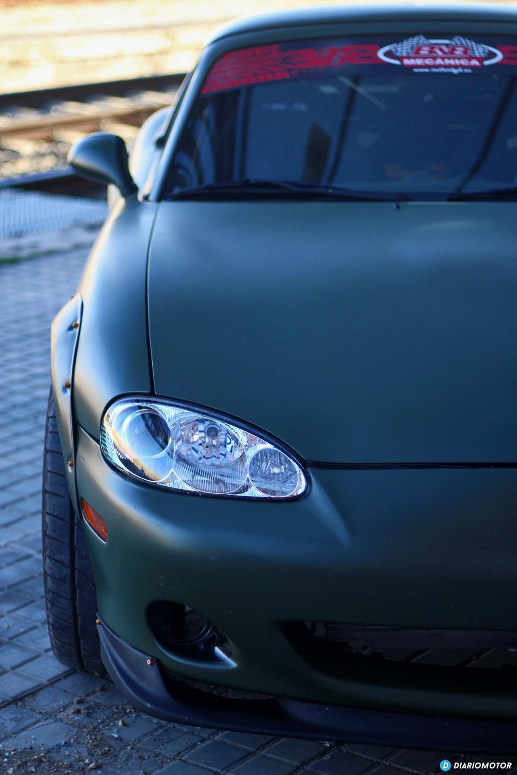 Por la carretera mirar por el retrovisor es ver un coche que sabes que en cualquier momento puede pasarte sin que tengas tiempo de bajar marcha para acelerar e intentar cogerle, es imponente. Puede parecer una locura este coche, y lo es, por eso nos encanta aún más. La historia tiene su explicación, y para eso hay que viajar años atrás hasta la calurosa y húmeda Florida, donde residía tiempo atrás su dueño, Borja. Quería un sustituto del Mitsubishi Evo de 620 CV que había tenido, pero semejante presión de soplado no era lo mejor para la climatología de la zona. ¿La alternativa? El Miata “americanizado”.
