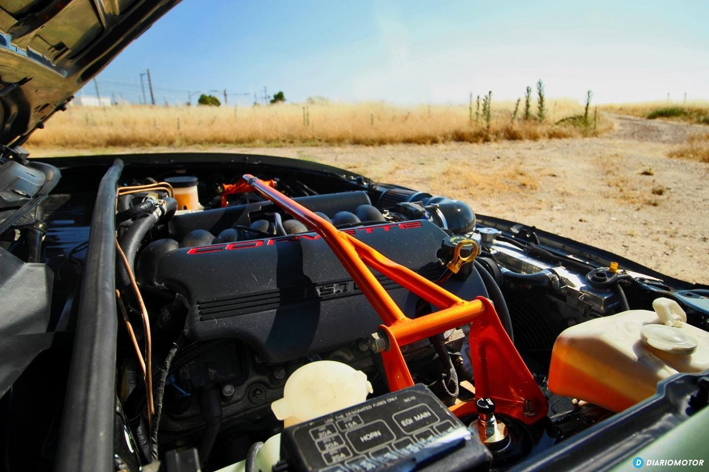 El sonido del “Baby Corvette”, como lo llama su dueño, es bruto, es algo que no esperas que salga del pequeño descapotable, pero cuando lo escuchas te atrapa. El escape es artesanal, de 3 pulgadas y con doble salida y un silencioso Magnaflow.