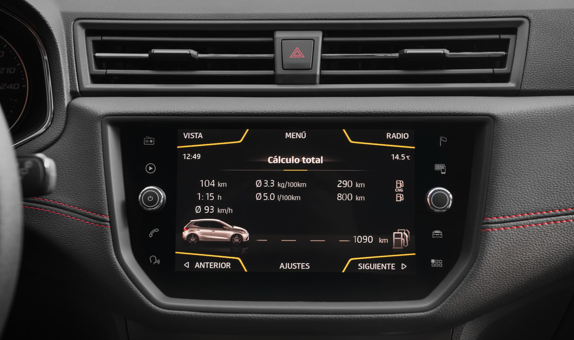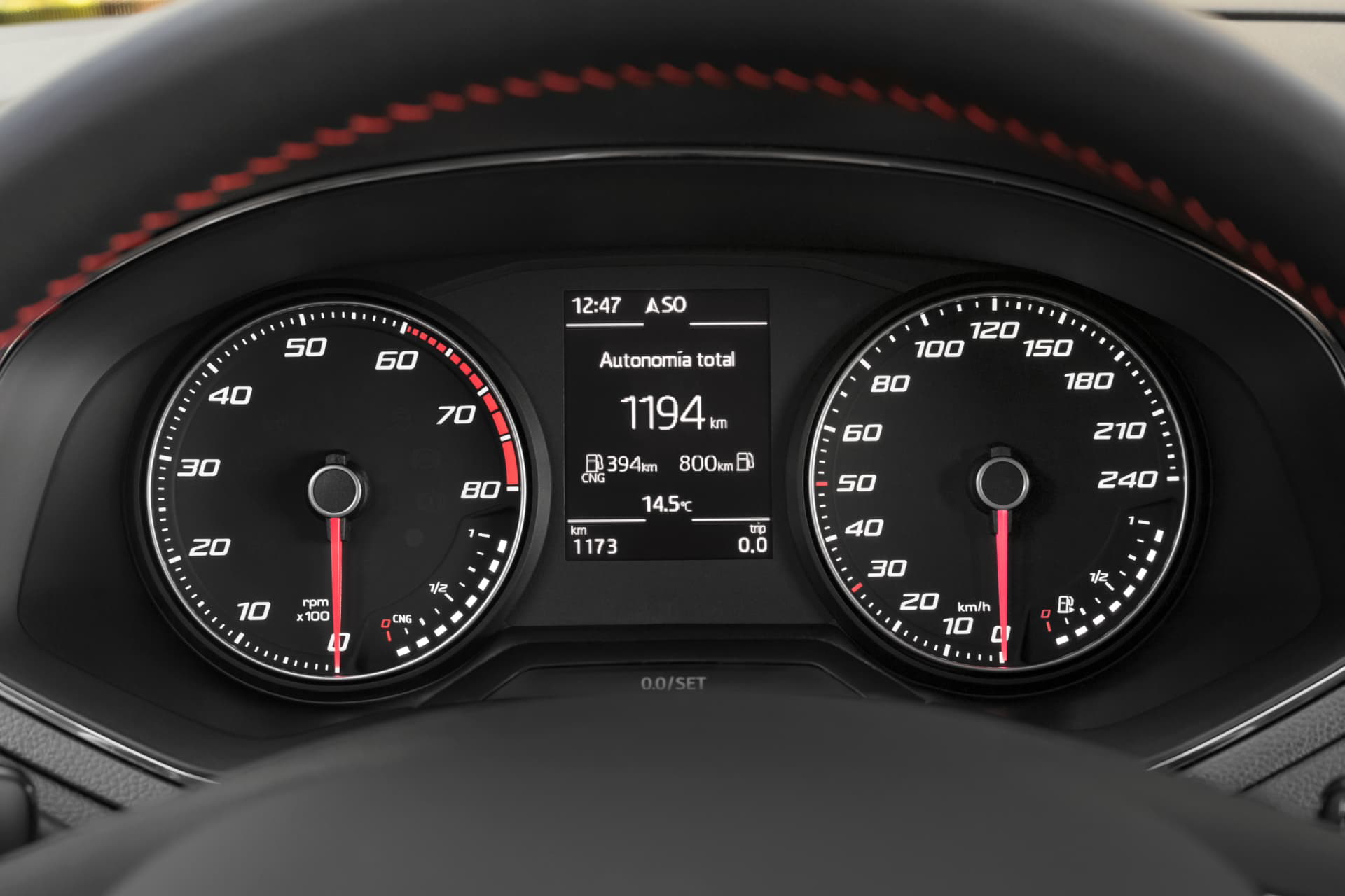 Sólo en su interior, muy bien equipado y con los aderezos propios de una versión FR, con esa tapicería específica, con la insignia en el volante ligeramente achatado, nos encontramos un par de tímidas diferencias. En la instrumentación aparece un segundo medidor de combustible, el del GNC y un testigo verde nos advierte de que el coche funciona a GNC y no con gasolina. Además en el sistema multimedia, en el navegador, aparece un nuevo menú entre los puntos de interés que nos advierte de donde están las gasolineras con puntos de recarga de GNC más cercanas.