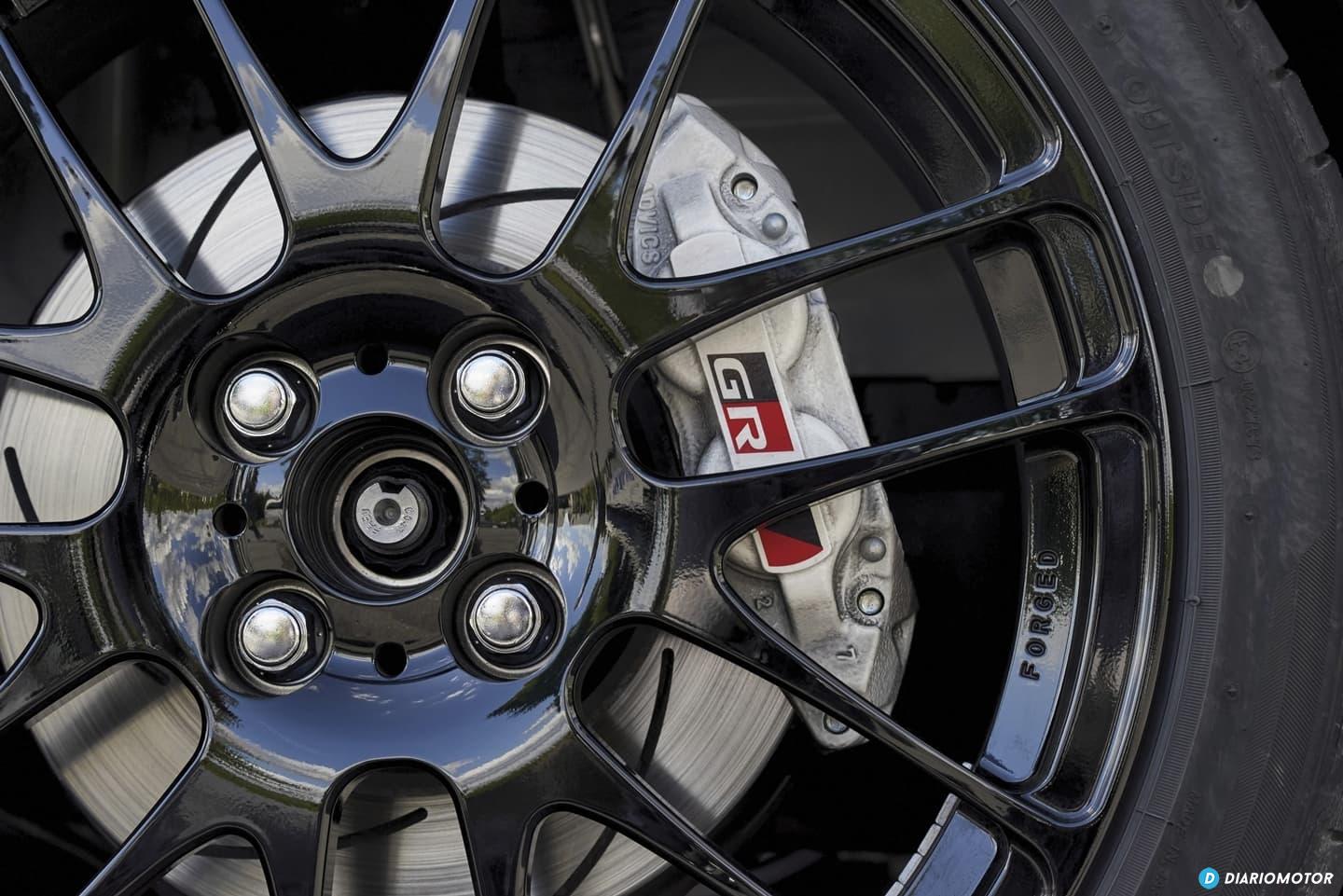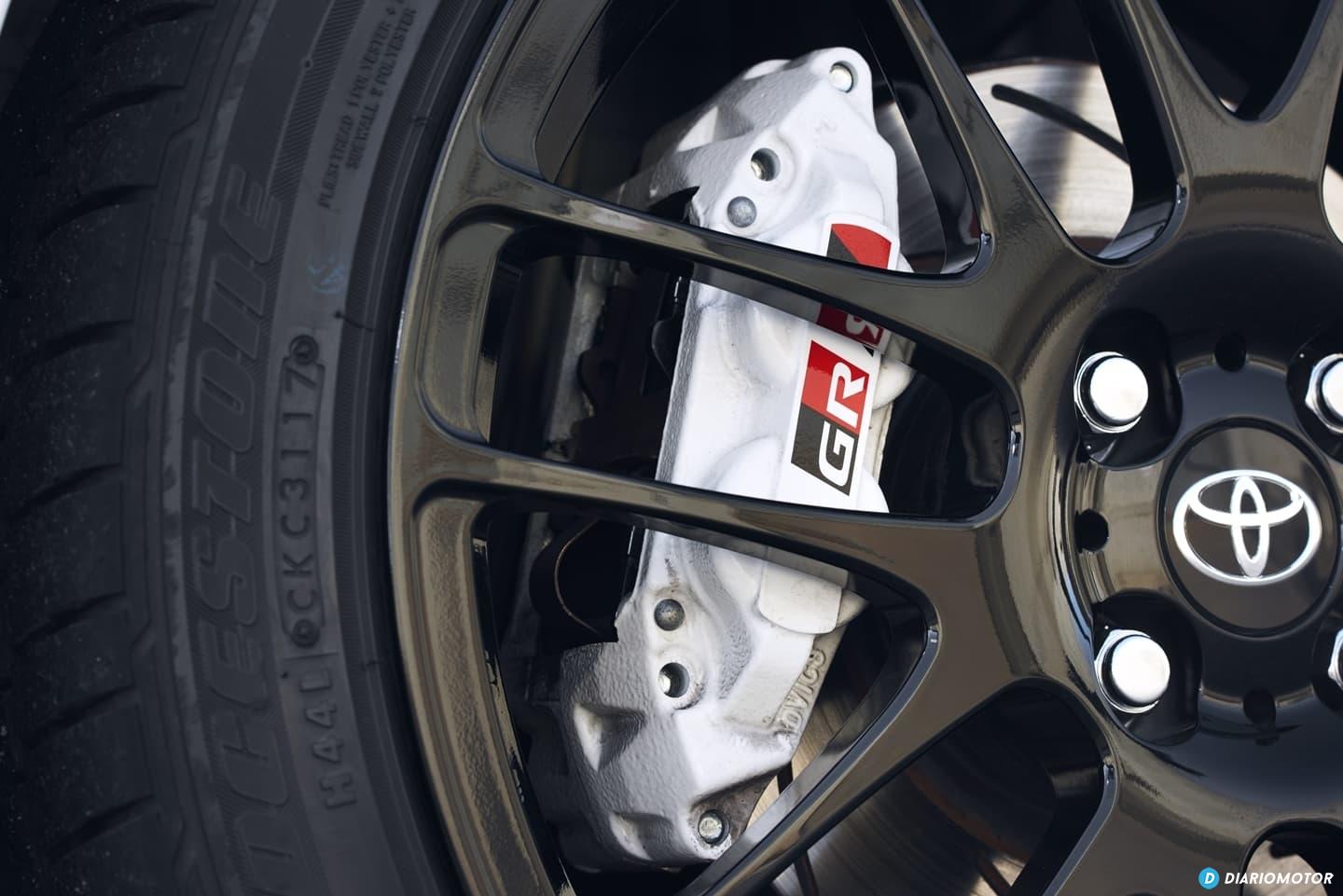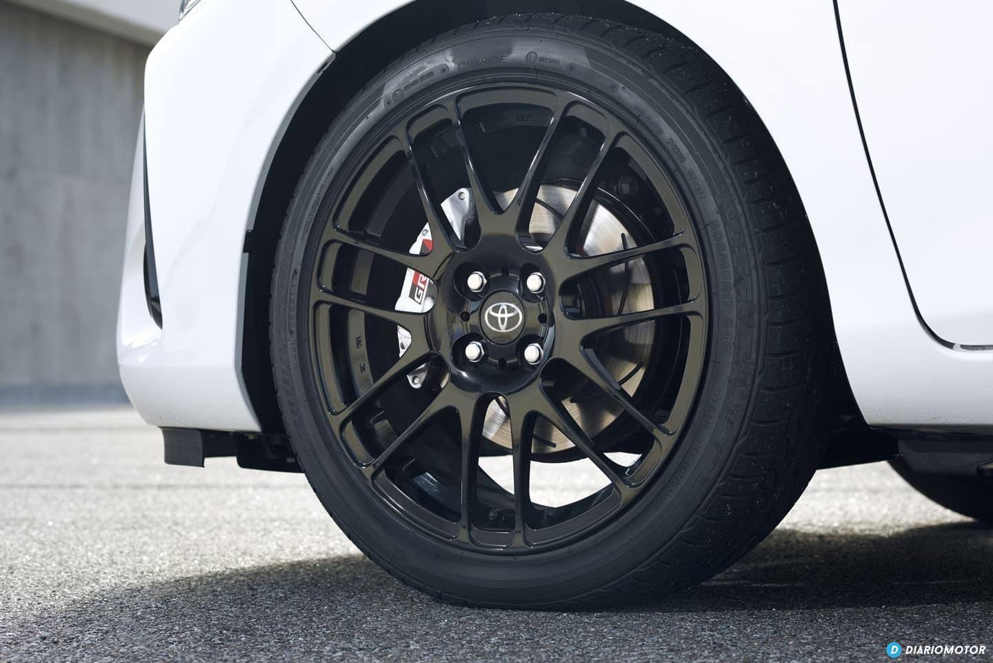 Recordemos que el Toyota Yaris GRMN cuenta con un motor de 1.8 litros de cubicaje, de 4 cilindros, que desarrolla una potencia de 212 caballos, sobrealimentado por un compresor, que van directos al eje delantero, contando con una transmisión manual. Su peso es de 1.135 kg, su chasis ha sido debidamente reforzado, cuenta con frenos deportivos y por supuesto cuenta con cambios estéticos y de equipamiento acordes a su nueva condición, con nuevos paragolpes, con un nuevo alerón, con unas llantas de 17 pulgadas firmadas por BBS, una instrumentación específica, asientos tipo baquet…