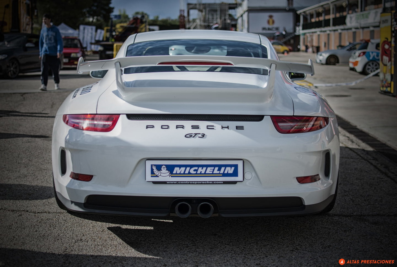 Por supuesto hablar de un track day es hablar de Porsche y las 8000vueltas Experiences no iban a ser menos incluidos varios GT3, un GT3 RS (997) y Turbos, muchos Turbos, además de varias unidades clásicas. De hecho como parte del parque móvil de exhibición de la organización nos encontramos con un espectacular Porsche 911 GT3 (991).
