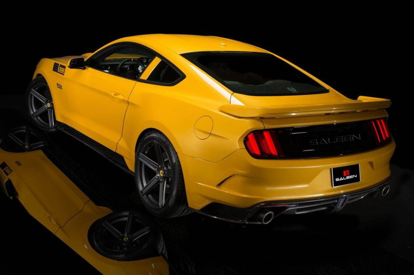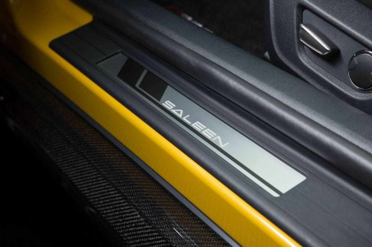 En la zaga de nuevo el difusor se construye en fibra de carbono, mientras que la zona situada entre las ópticas se oscurece. Un pequeño spoiler se monta sobre el portón del maletero. La guinda estética la pone un vinilo lateral en el que se lee «302», un claro homenaje a los Mustang Boss 302, una de las más gloriosas estirpes de deportivos estadounidenses. En el interior del coche es donde hay menos cambios, manteniéndose casi al completo de serie, a excepción de un nuevo tapizado en Alcantara para los asientos deportivos y el logotipo de Saleen ubicado en lugares estratégicos, como el pomo de la palanca de cambios, el volante o una instrumentación revisada.