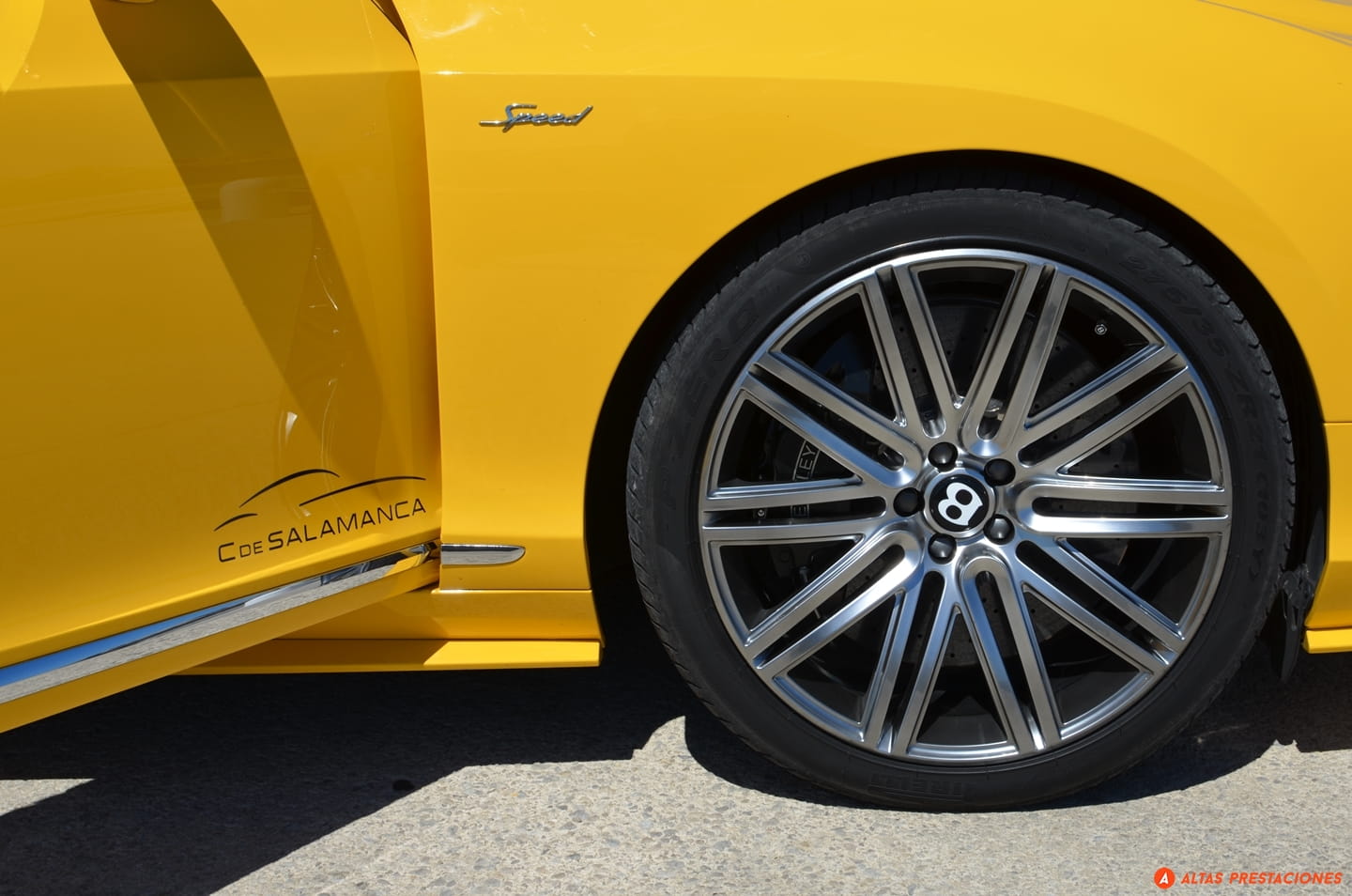 Hablando de oro, he de admitir que mi primer pensamiento cuando vi a este Bentley Continental GT Speed Convertible aparecer pintado en ese peculiar color Continental Yellow fue el de que esta combinación no era la más adecuada. Con la salida de los primeros rayos del Sol para secar la voluptuosa carrocería exterior, me vi obligado a meditar sobre mi primera impresión. Me vi obligado a admitir que, bajo ese aspecto extravagante, seguía existiendo clase y distinción, cualidades acentuadas además con unas llantas de 21 pulgadas inmejorables y un interior tapizado en piel negra y con costuras en el mismo amarillo que luce el exterior. Observado al detalle, este Bentley hace honor a su denominación Speed arriesgando más allá de lo que cualquiera cabría esperar, pero demostrando como ningún otro que la visión de la deportividad que ofrece Bentley es única e inigualable. Sí, he de admitirlo, acabé enamorado de este color amarillo.