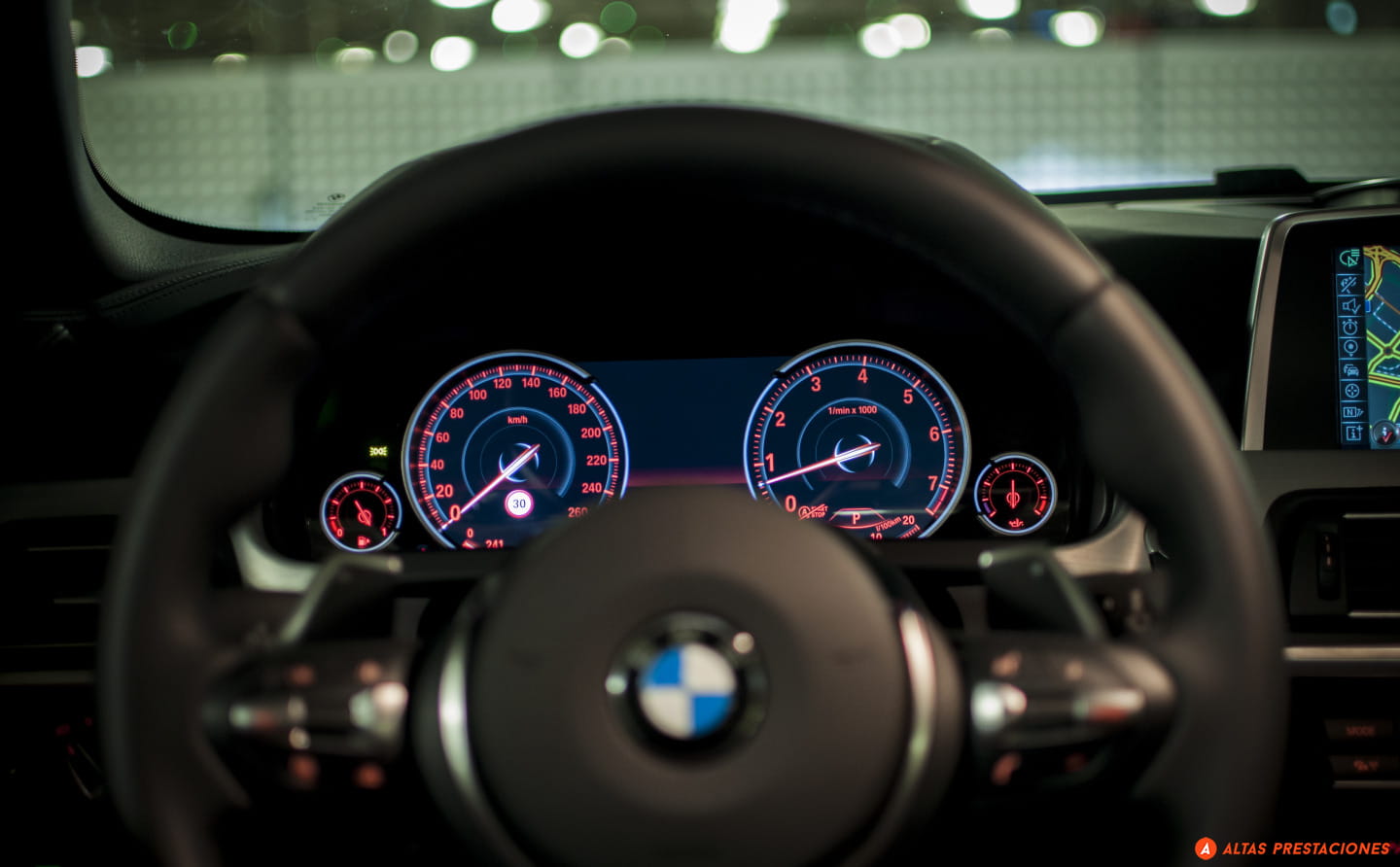 Al abrir la puerta nos reciben unos asientos tapizados en cuero con un bonito tono marrón. Cómodos, con reglajes eléctricos y calefactados. Geniales. Por diseño, por acabados, por confort… Ante nosotros deja constancia del paquete M de esta unidad un volante con el sello del departamento deportivo de la marca. 3 radios, un escueto espacio reservado para el airbag, una buen grosor para el aro… me encantan los volantes M de BMW.