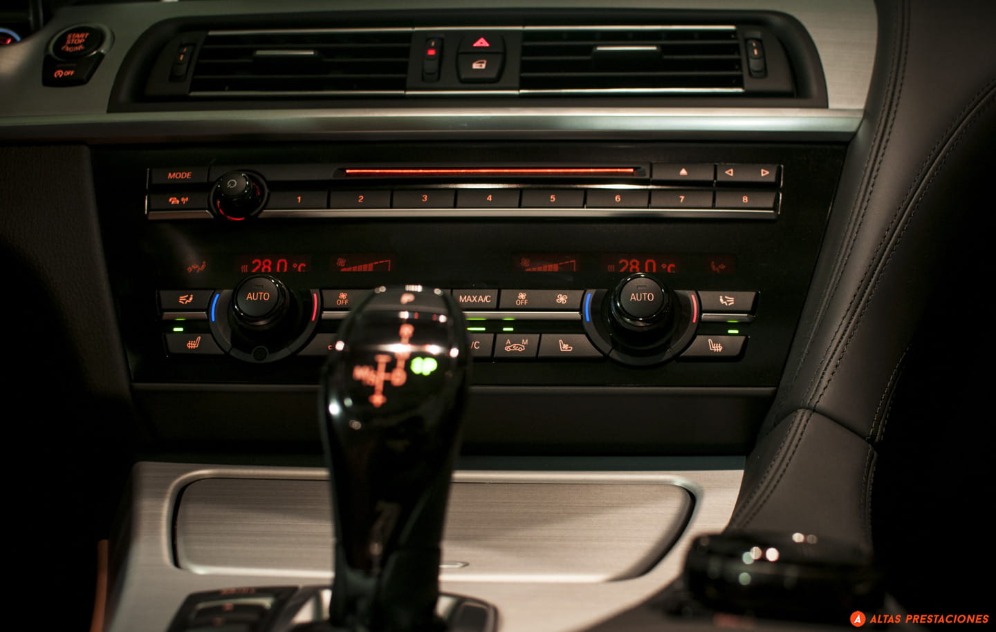 A nuestro alrededor se conforma un entorno de excelentes calidades. El puente central, los guarnecidos de las puertas, el salpicadero… el cuero abunda miremos por donde miremos y además se presenta en excelente compañía junto a unos acabados en aluminio que se reparten a lo largo de un salpicadero donde la distribución de elementos y el diseño sigue el camino habitual de la marca.