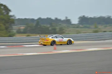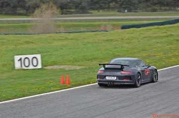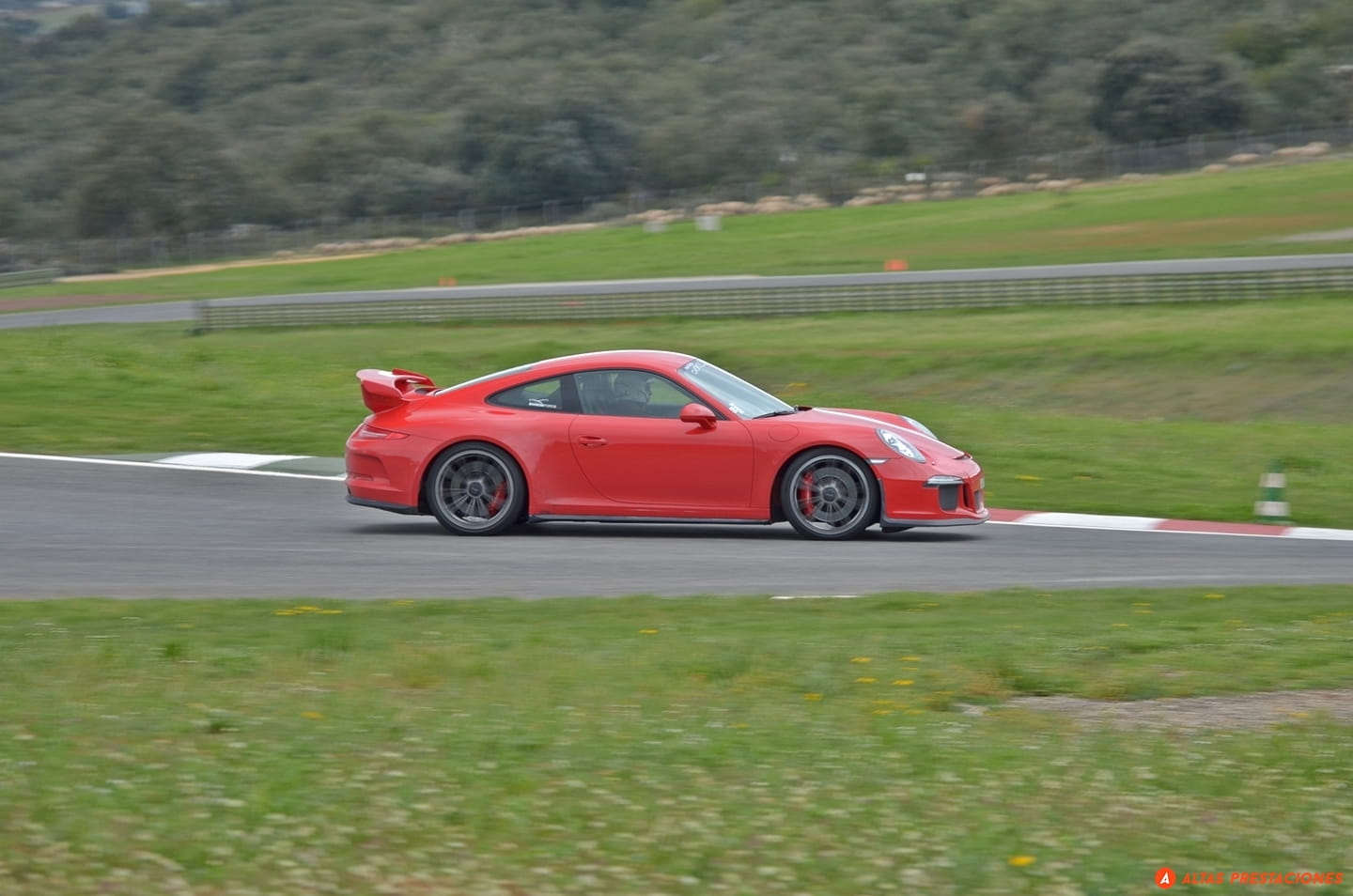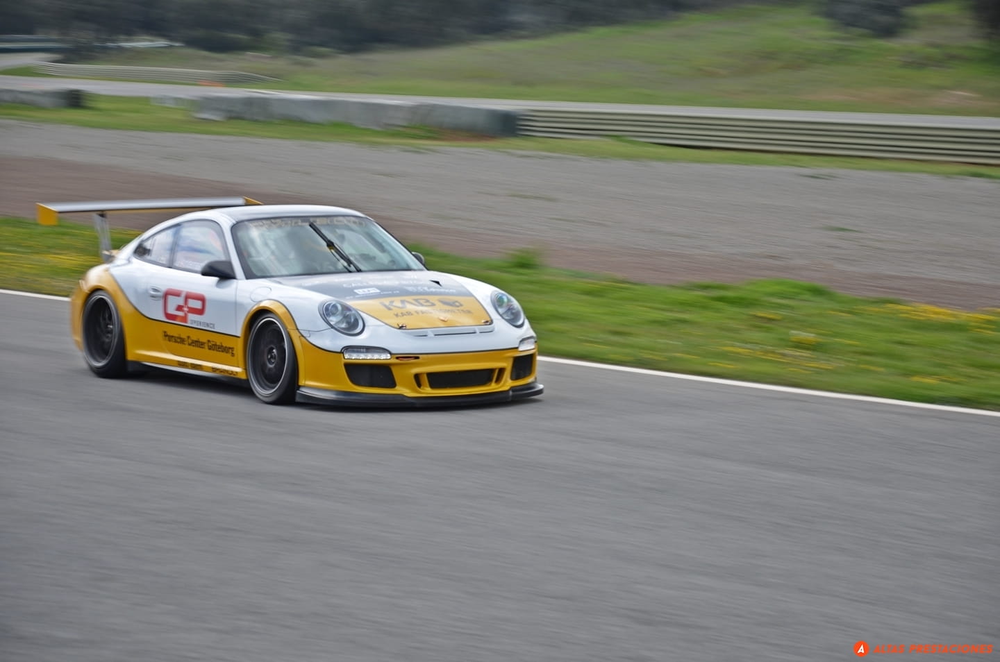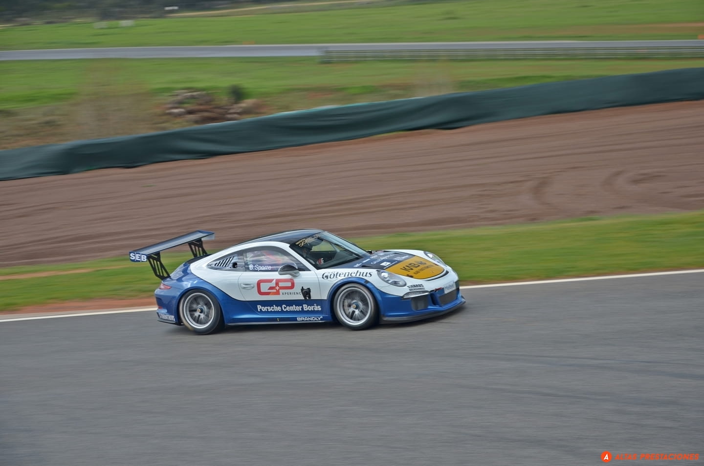Los que conozcan el circuito de Ascari sabrán que no estamos ante un circuito sencillo, más bien podemos hablar de un circuito exigente que requiere más de dos minutos de concentración por vuelta para ir rápido. Hay zonas de adelantamiento, no muchas, pero las hay, sin embargo hoy cada metro parece que es un bien sitio para meter el «hachazo». Cierta paz reina entre las primeras tandas, una calma que termina de forma abrupta cuando desde uno de los boxes cobra vida el V8 de un Ferrari 458 Challenge… un sonido atronador que deja a un lado al resto de V8 y flat-six que están en pista. Pero este movimiento de Ferrari no queda sin respuesta, desde otro box nos llega otro sonido gutural, sendos Porsche 911 con especificación FIA GT3 salen empujados por mecánicos rumbo al pitlane. Las cosas se ponen serias, los esbeltos deportivos de calle dan paso a sus hermanos más radicales, es hora de ver una auténtica guerra en pista.