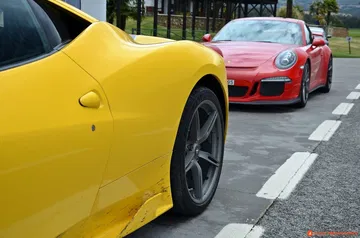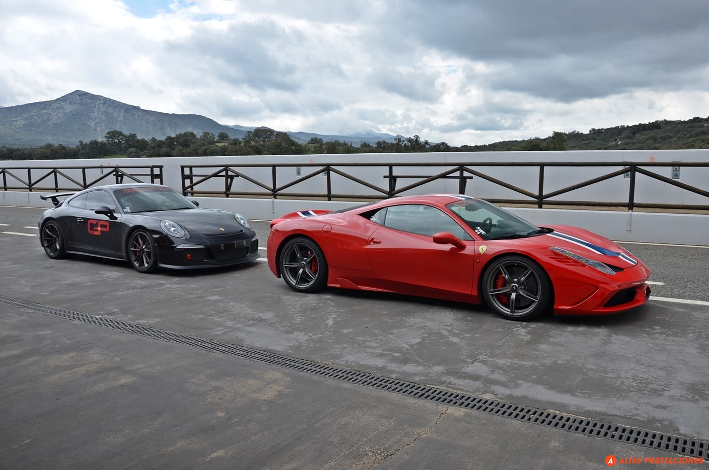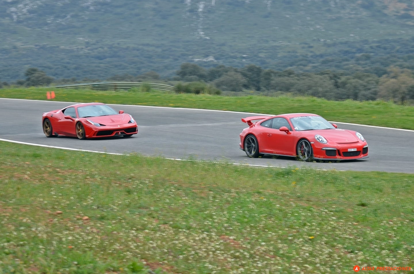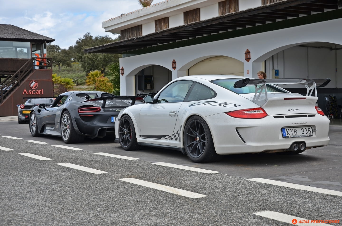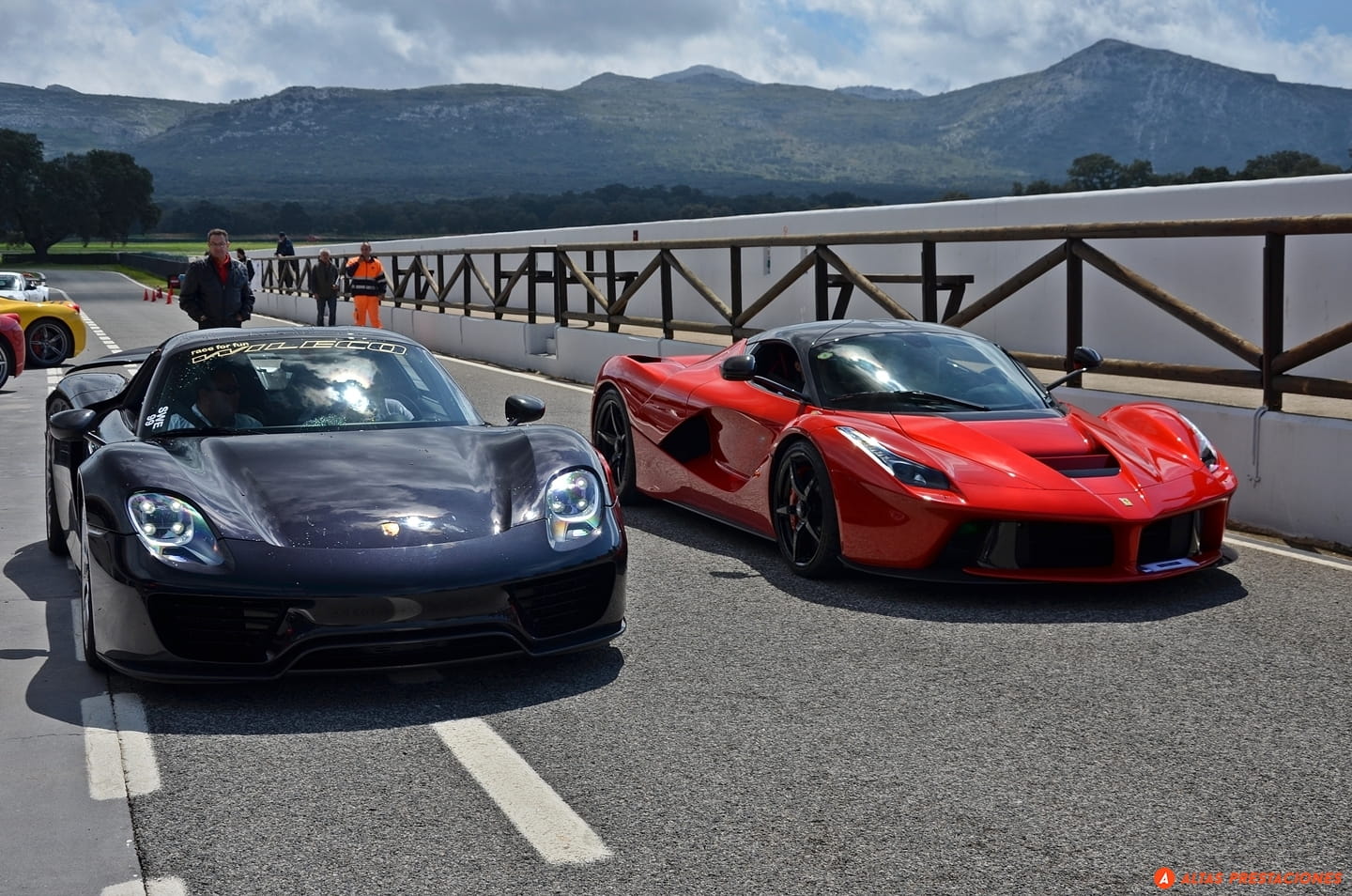El abanico de monturas disponible es muy amplio, tan amplio como para que a primera hora de la mañana ya te veas abrumado por los interesantes piques que surgirán entre GT3 y Speciale o el casi imposible de creer entre 918 Spyder y LaFerrari. Contemplando estos últimos ya me siento afortunado, pues ante mí vislumbro el estado del arte de la industria del automóvil. Tecnológicamente hablando estamos ante el máximo exponente del automóvil actual, poniendo en el mercado soluciones que todavía hoy siguen llevando a sus respectivas marcas a lo más alto del podio.