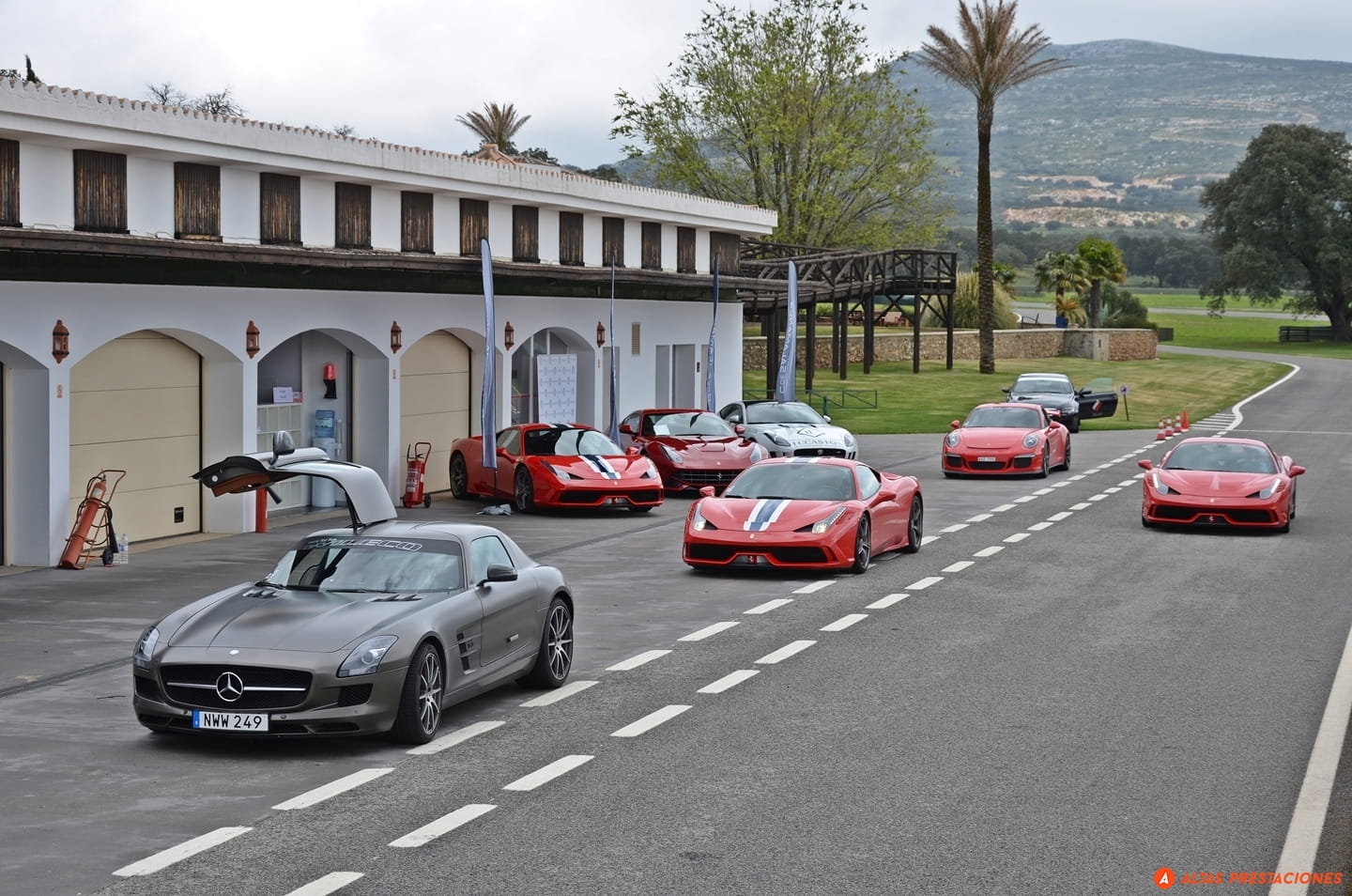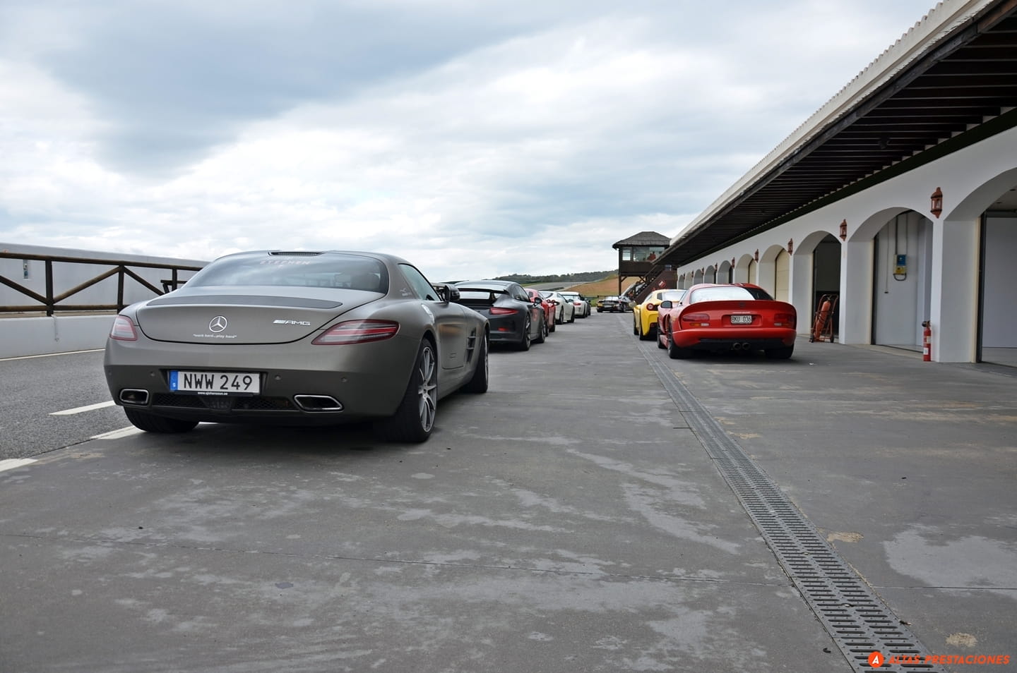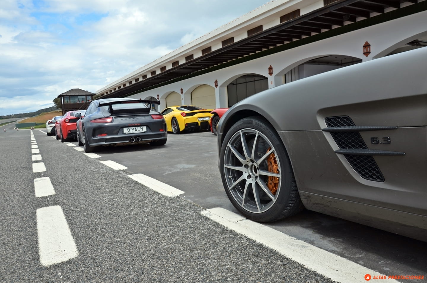 Como podréis imaginar, madrugar no es un problema hoy, de hecho incluso me permito el lujo de adelantarme al despertador para recortar tiempo hasta mi destino durante los próximos tres días, el circuito de Monteblanco. A la llegada al circuito onubense, me sorprende el hecho de que este club de pilotos comandados por la organización de Wileco Events no ha perdido ni un segundo para ponerse en cola a la salida del pitlane… pocos minutos después de mi llegada se enciende la luz verde del semáforo y un atronador estruendo acaba con la calma. Hasta el próximo Viernes cuando se de el colofón final en el circuito de Ascari, será posible disfrutar de Mercedes SLS, Nissan GT-R, Dodge Viper, Porsche 911 Turbo, GT3, 918 Spyder, Ferrari 458 Speciale, Challenge, Scuderia 16M, F12, LaFerrari… y lo más curioso de todo es que todos comparten una única característica, sus pilotos no han venido a darse un paseo, más bien todo lo contrario, hundiendo el pie hasta el fondo desde el primer instante. Son amigos, incluso compañeros en alguna actividad, pero con el semáforo en verde todo eso queda atrás para componer una parrilla de salida incluso más interesante que cualquier carrera de Fórmula 1.