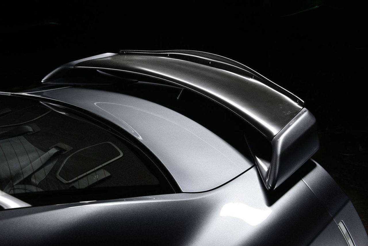 El taller ha instalado en primer lugar un nuevo intercooler, una nueva bomba de combustible de alto flujo y unos inyectores con más caudal. Aunque los turbos IHI son los mismos que el GT-R monta de serie, ha reemplazado toda su fontanería, usando piezas forjadas en admisión y downpipes, así como manguitos de altísima calidad. Lo completa con un sistema de escape de 102 mm – desde los colectores hasta los silenciosos – y una ECU recalibrada, con hasta seis modos de funcionamiento totalmente personalizables.