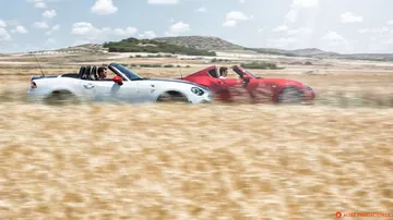 Ponerse a los mandos de ambos modelos es un torrente de sensaciones, pero todas muy diferentes, jamás conseguir lo mismo pudo tener caminos tan diferentes. En el Mazda MX-5 RF nos encontramos con un carácter dócil, refinado y equilibrado, una receta muy compleja donde se ha combinado el placer de conducción con el uso diario sin penalizar ninguno de ellos. Su propulsor de 2 litros es lo mejor del conjunto, un bloque atmosférico que sube de vueltas de forma muy progresiva estirando marchas con verdadera delicia y con un paso por curva muy bueno pese a lo blando de sus suspensiones. Este MX-5 RF denota ser un sabio en su campo y ello lo demuestra con una puesta a punto perfecta para su receta como deportivo de uso diario.