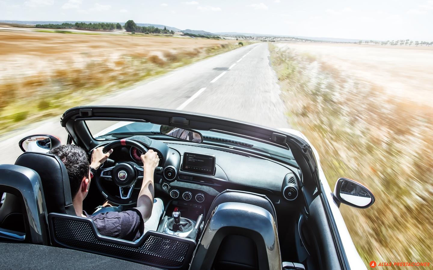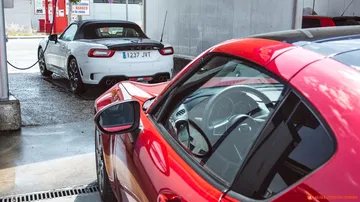 Pero de repente te montas en el Abarth 124 Spider y tu ya enorme sonrisa crece aún más. Sí, estás encantado con el miata y su casi perfecta puesta a punto, pero entonces engranas primera, abres gas en el Abarth y esa trasera juguetona te demuestra que este chasis puede hacer mucho más. El Abarth es el lado oscuro de este acuerdo, es la diversión pura y dura que en el MX-5 no terminas de alcanzar por lo refinado de su carácter. Cruzadas continuas, un sonido delicioso y un motor turbo que siempre está disponible sin importar qué marcha lleves o dónde esté la aguja del cuentarrevoluciones. Es un tracción trasera muy fácil de descolocar, pero siempre con mucha sensación de control y con gran efectividad si sabes hilar fino en las trazadas. Es carácter sin medias tintas.