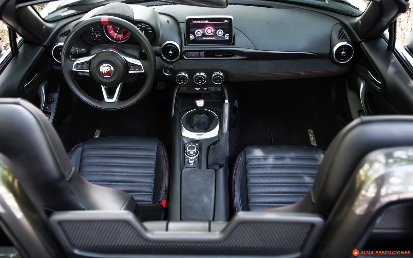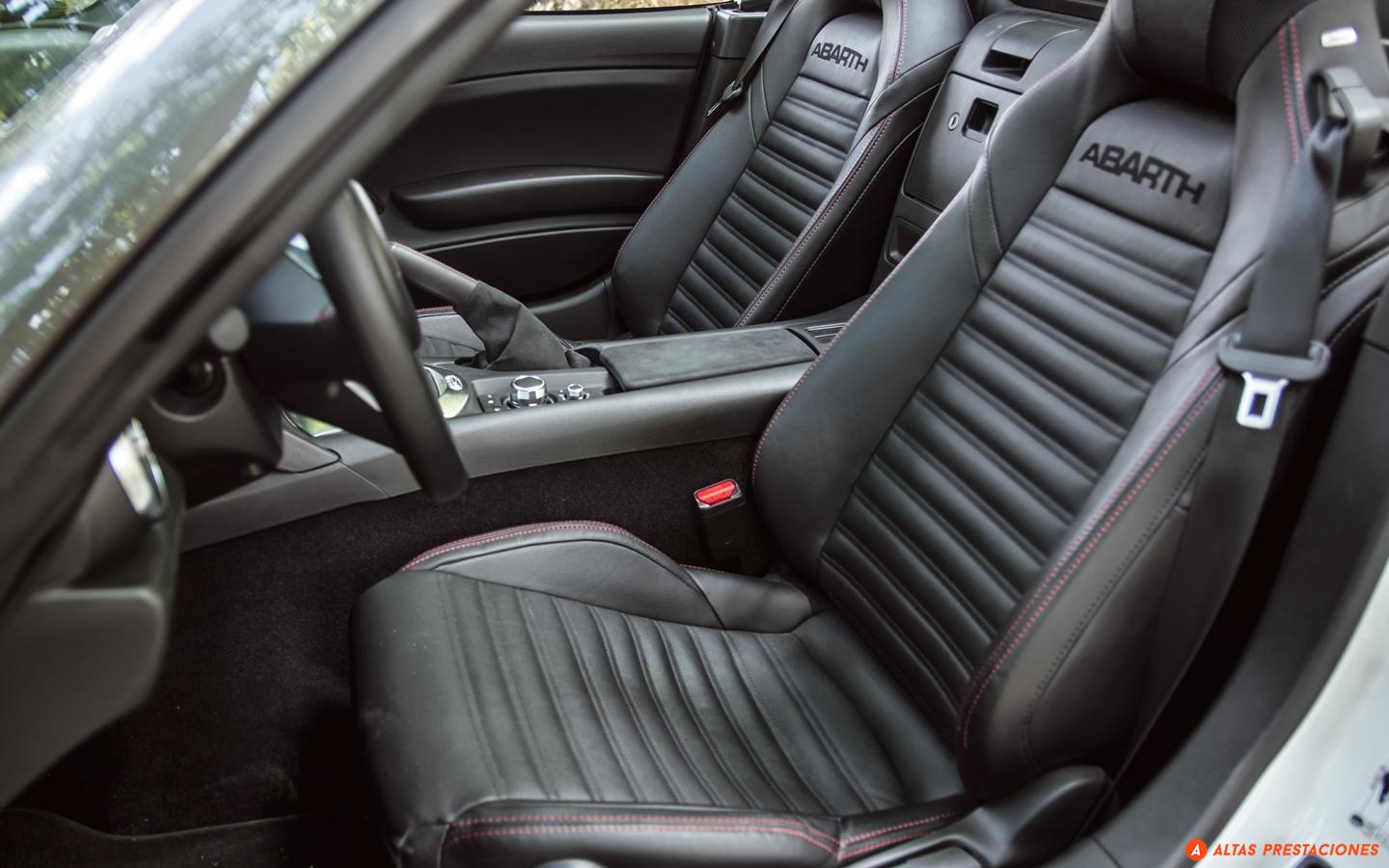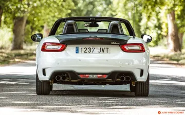 Que el sello del escorpión luzca sobre el roadster significa que se habrán incluido elementos específicos como el sonoro escape Record Monza, el equipo de suspensiones Bilstein desarrollado únicamente para Abarth, un equipo de frenos Brembo y un diferencial autoblocante trasero de tarado completamente distinto al que puede instalar Fiat o Mazda. También se incluyen cambios en el interior y el exterior a nivel de tapizados, terminaciones o vinilos como el acabado bitono exterior que luce nuestra unidad de pruebas. Por mucho que puedan tachar al Abarth de un tuneado del Fiat 124 Spider, ese viaje a Italia supone bastante más.