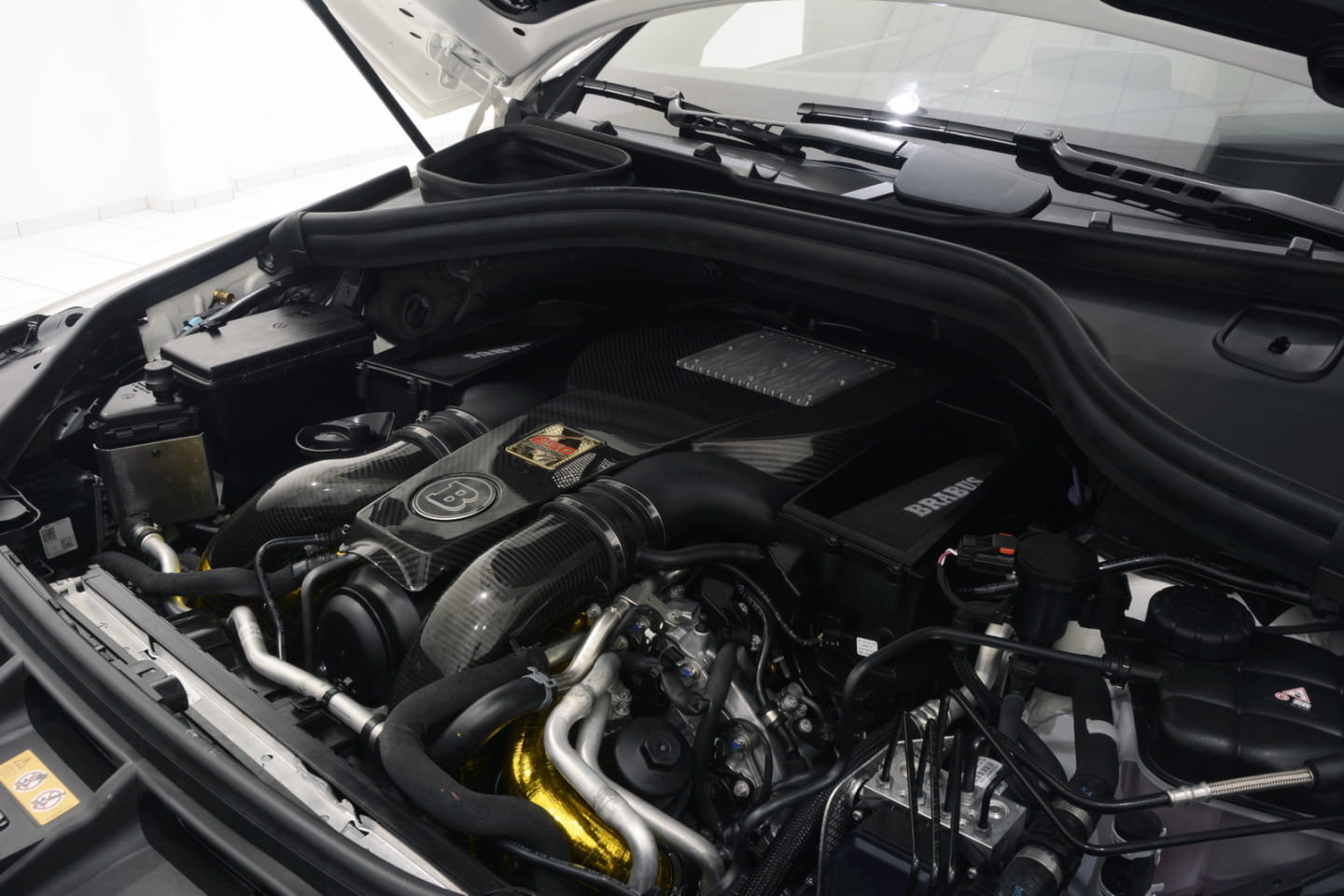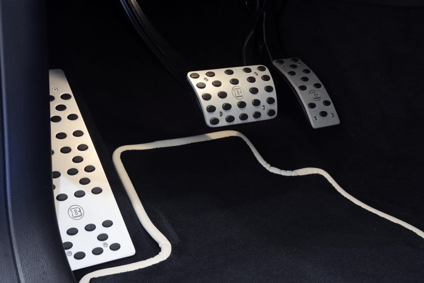 Además Brabus ha retapizado el interior y ha añadido nuevos detalles como las alfombrillas, los umbrales de las puertas, los pedales o inserciones varias, como la del volante.