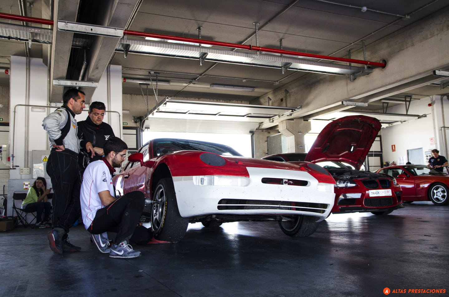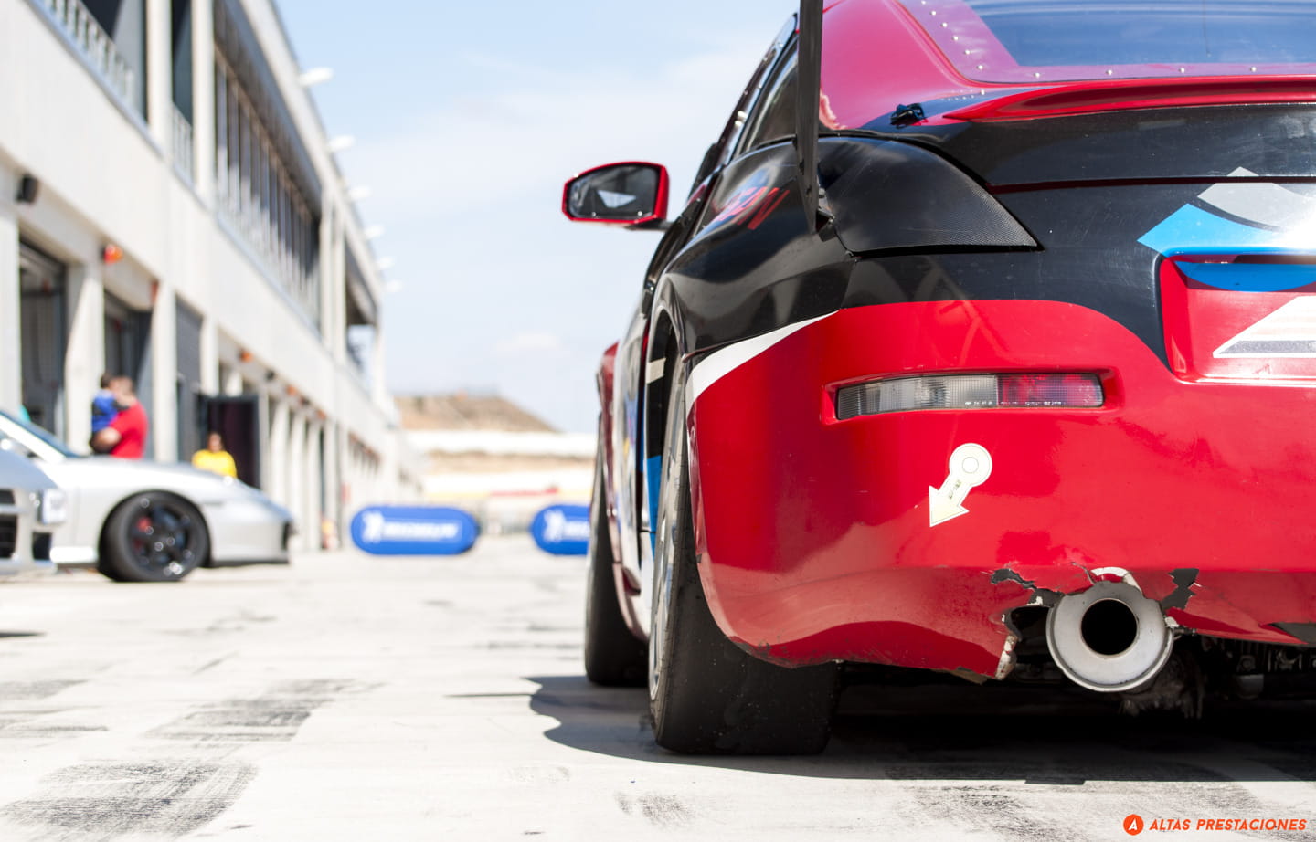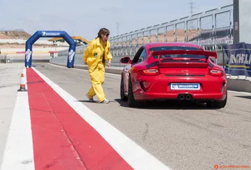 Un McLaren MP4 12C, elegante, negro, espera en primera línea con las puertas alzadas, un Renault Clio RS enfila animado el pit lane mientras que uno de los Porsche 911 GT3 cruza la línea de meta. Me encuentro con el nuevo BMW M3, me encuentro con un Nissan 370Z, con un Abarth 500…