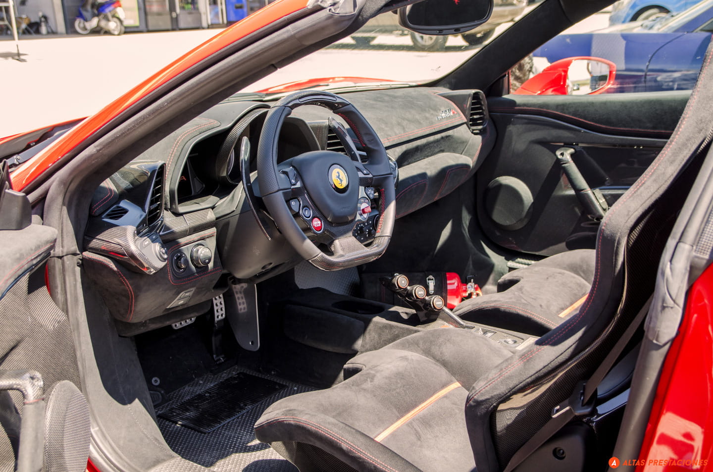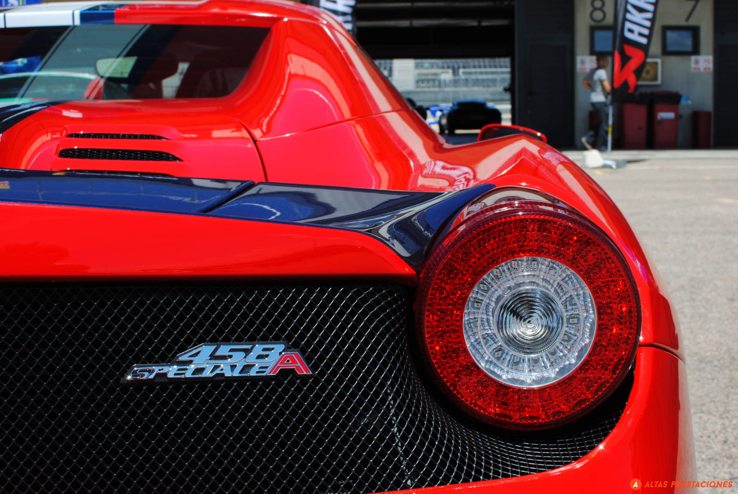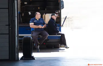 Un Ferrari 458 Speciale Aperta llega a la hora de comer concentrando la mirada de no pocos curiosos. Se baja la puerta de los boxes para una breve pausa. El buffet nos espera.