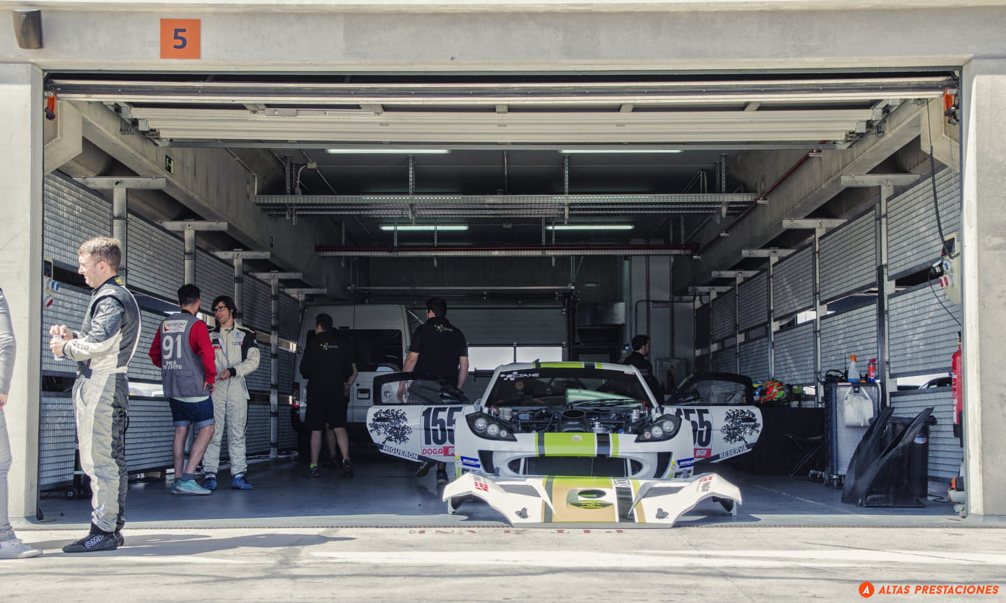 Volvemos al paddock, se acerca la hora de comer. Me sorprende la buena presencia de “cuatroces”. Un Alfa Romeo 4C blanco espera fuera, uno gris dentro del box principal… me tiene loco el “Elise” de Alfa Romeo.