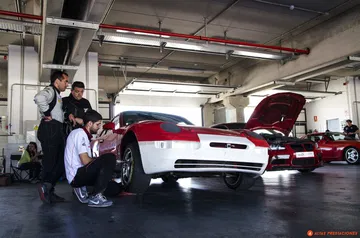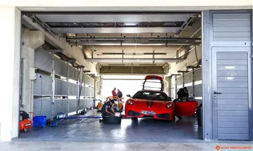 Unos pocos metros más allá, en el box contiguo, dan el último repaso a un Ferrari F430.
