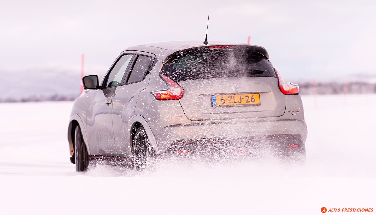 En nuestra prueba sobre hielo tuvimos que vérnoslas con un Nissan Juke NISMO 4×4. La tracción a las cuatro ruedas hace que su potencia sea más accesible para cualquier conductor, que rodar muy rápido con absoluta seguridad sea realmente sencillo. Pero, desgraciadamente, solo está disponible con un cambio de variador continuo y 8 falsas relaciones de marcha prefijadas que no nos han resultado muy creíbles. Digamos que esta alternativa es la más recomendable para aquel que prefiera prescindir de las sensaciones y la deportividad que ofrece el cambio manual, y el reto en su conducción que supone el tracción delantera, para no tener que vérselas con un cambio manual que, ciertamente, no es cómodo.