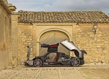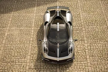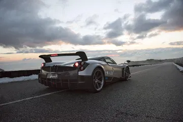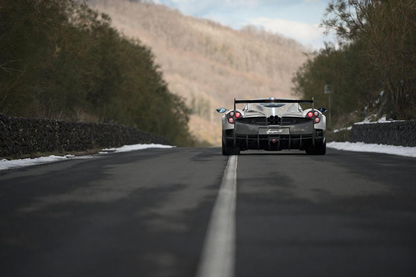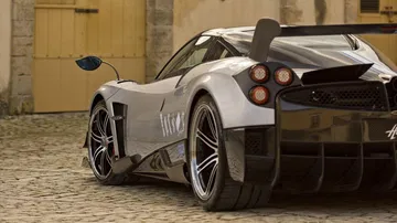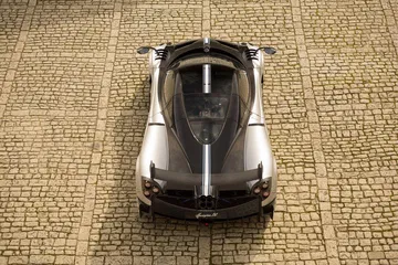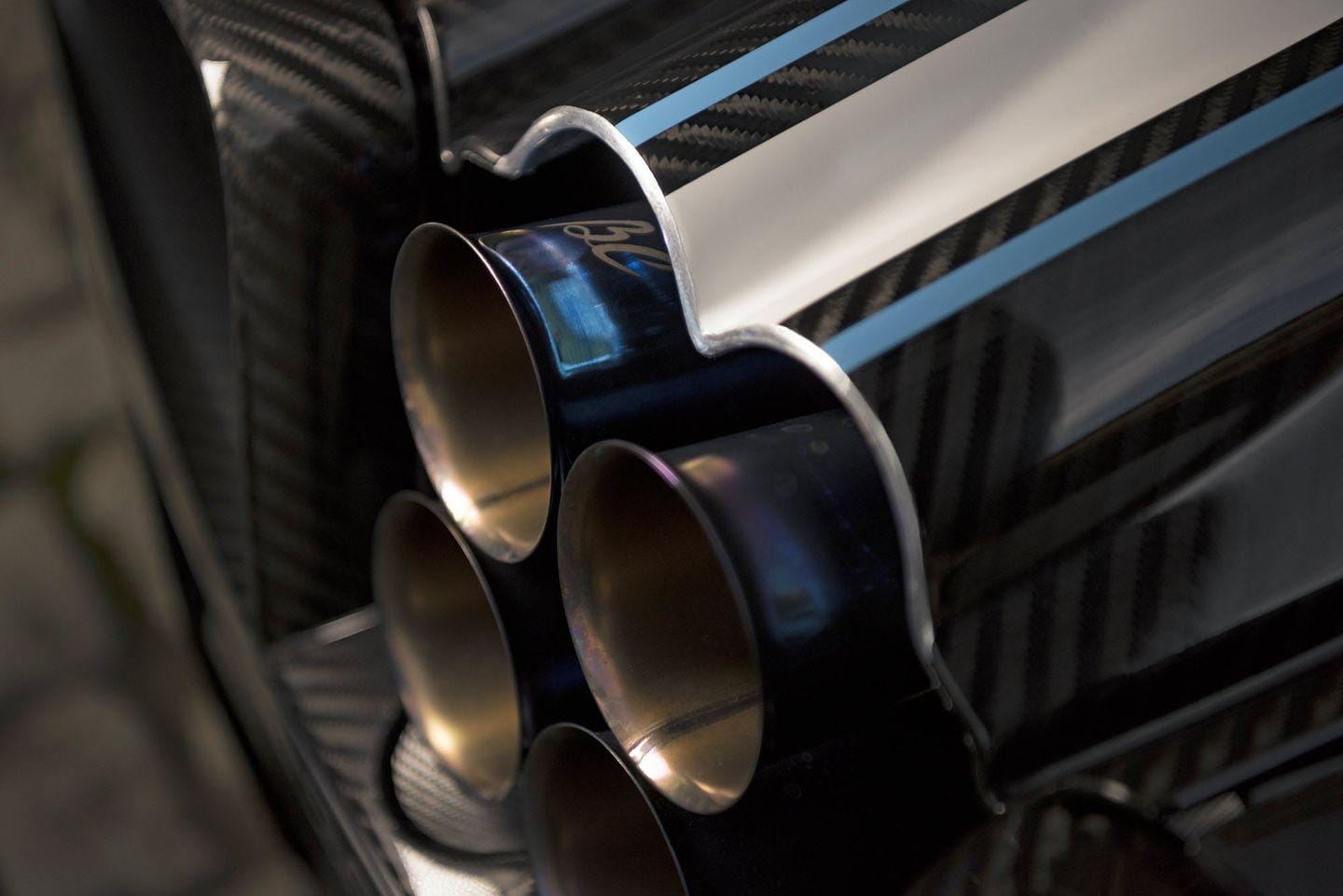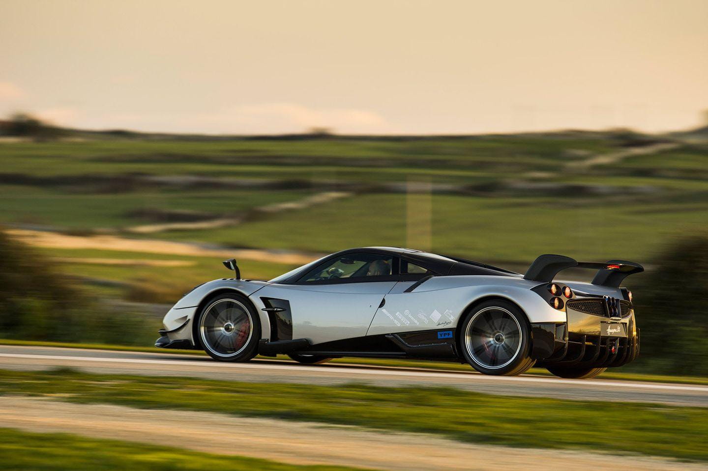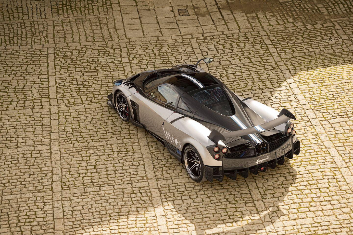 Todo esto no sería digno de mención sin una carrocería esculpida con una gran atención al detalle en el plano aerodinámico. Fijaos en el enorme spoiler trasero fijo, de fibra de carbono. Renuncia al aerofreno activo de los Huayra con el objetivo de ahorrar unos 6 kilos de peso, y al mismo tiempo le da una imagen más agresiva y radical. Toda la carrocería ha sido modelada de nuevo con la ayuda de simulaciones de dinámica de fluidos y túneles de viento. No encontraréis una zona del coche que no haya sido rediseñada.