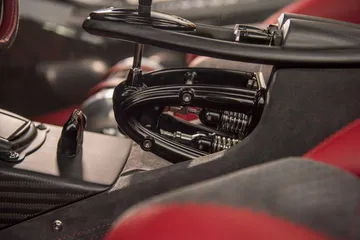 Es más rápida y ligera que la caja de doble embrague de los Huayra convencionales. El freno de mano es eléctrico, y también ayuda a reducir el peso. Incluso sus neumáticos Pirelli P Zero Corsa montados sobre llantas de aleación ultraligera – en medidas 255/30ZR20 para el eje delantero y 355/25ZR21 para el eje trasero – han sido desarrollados para el Huayra BC y son un 3% más ligeros que los neumáticos del Huayra. Opcionalmente, puede montar los espectaculares P Zero Trofeo R – sólo para circuito – con los que la aceleración lateral alcanza 2G.
