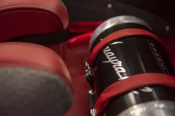 Su escape de titanio ha sido rediseñado y además la transmisión de potencia a las ruedas se efectúa mediante un nuevo diferencial electrónico y ejes de transmisión de fibra de carbono. Tecnología de competición aplicada a un coche de calle por primera vez, según la nota de prensa de Pagani. En el interior del coche nos encontramos la misma atención al detalle de siempre, complementada en el BC con un extintor personalizado y un mecanismo aún más expuesto para la palanca de cambios. El volante y asientos hacen uso extensivo de la Alcantara.