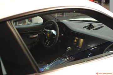 La alcántara se reparte el protagonismo de un interior donde no faltan unos buenos asientos tipo baquet. En el caso de la unidad expuesta en Nürburgring tampoco faltaba el paquete Sport Chrono.