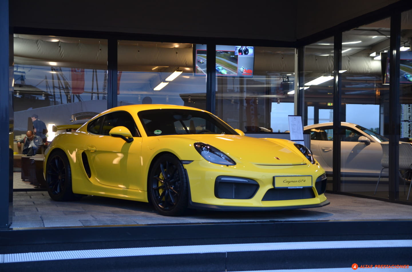 Recibiéndonos a golpe de Porsche Cayman GT4, en un poco o nada discreto amarillo…