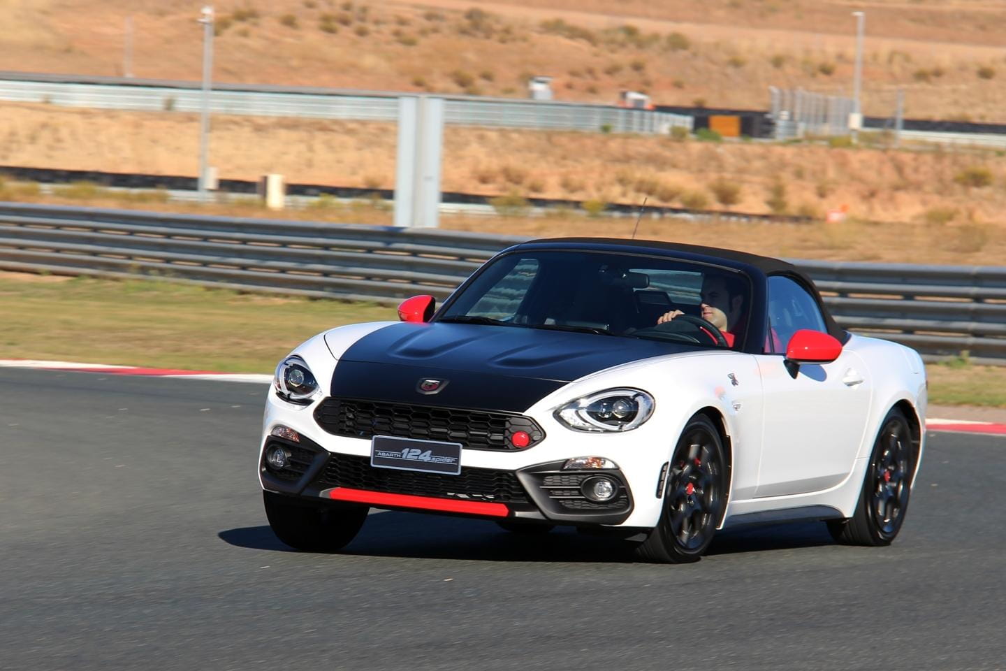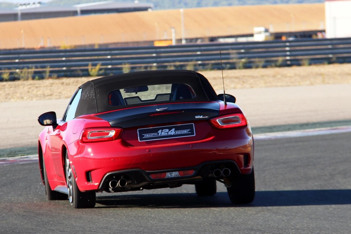 Lanzados ya sobre el trazado, el Abarth 124 Spider resulta un coche efectivo, noble y que transmite al conductor todo cuanto sucede. Su trasera se maneja de forma muy sencilla, mostrándose transparente en reacciones, lo que te permite trazar al límite para marcar tiempos o divertirte sin reparos forzando el sobreviraje, pero siempre manteniendo el control y sin ofrecer reacciones bruscas. Literalmente el coche fluye sin importar el ritmo de conducción. Es un coche sencillo de conducir, mucho de hecho, con un motor repleto en todo el cuentarrevoluciones y un alto grado de implicación del conductor. Se deja hacer de todo y sin oponer resistencia, encontrando como único límite el cambio automático de origen Mazada que queda un peldaño por debajo de las posibilidades del coche en conducción deportiva.