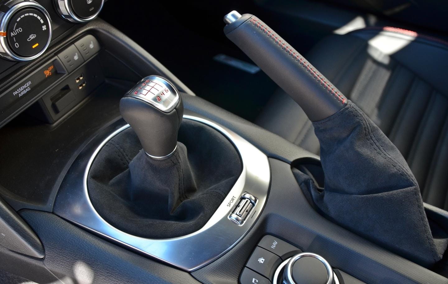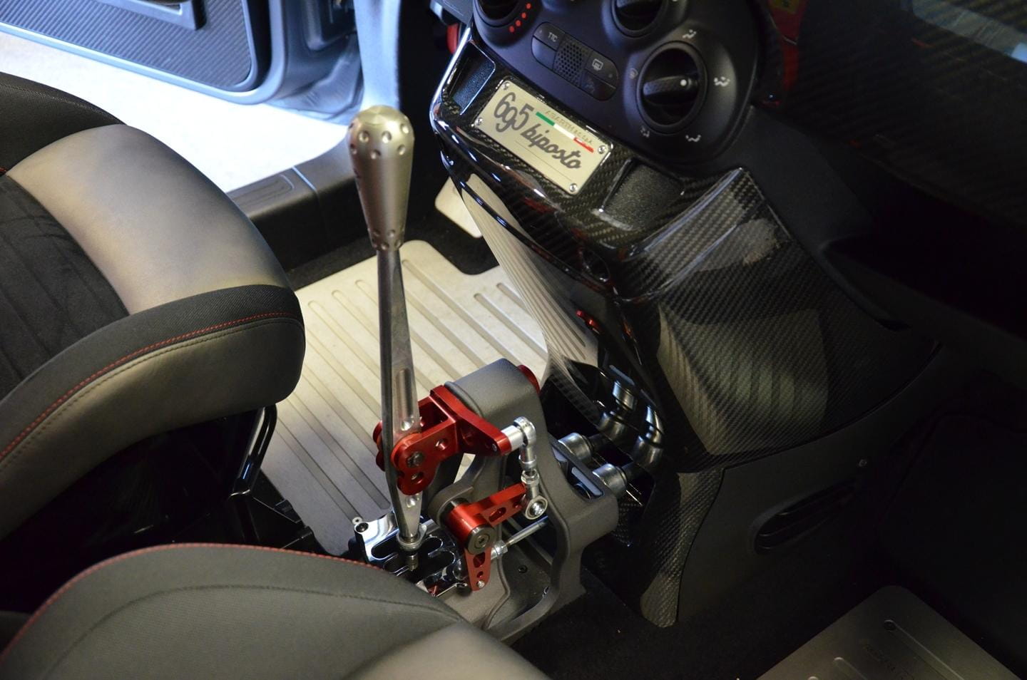 Y por este motivo, en la segunda tanda del vueltas al circuito me puse a los mandos del Abarth 124 Spider con cambio manual de seis velocidades. Esta combinación es a todas luces la adecuada, sobre todo para el posicionamiento del Abarth como la opción más radical. Enfilamos de nuevo la recta de meta y ahora sí. Cortos recorridos, tacto duro y preciso, el selector manual permite llegar a la quinta esencia del conjunto del roadster de Abarth. Es el momento de divertirse y la trasera del 124 Spider te invita a ello, cierras dirección, golpe de gas y ahí está el cóctel explosivo de Abarth con el escape Record Monza bramando sin contemplaciones mientras te deslizas encadenando curvas. Una mínima corrección de volante y el control vuelve a ser total para hacer el resto de la pista con tiralíneas.