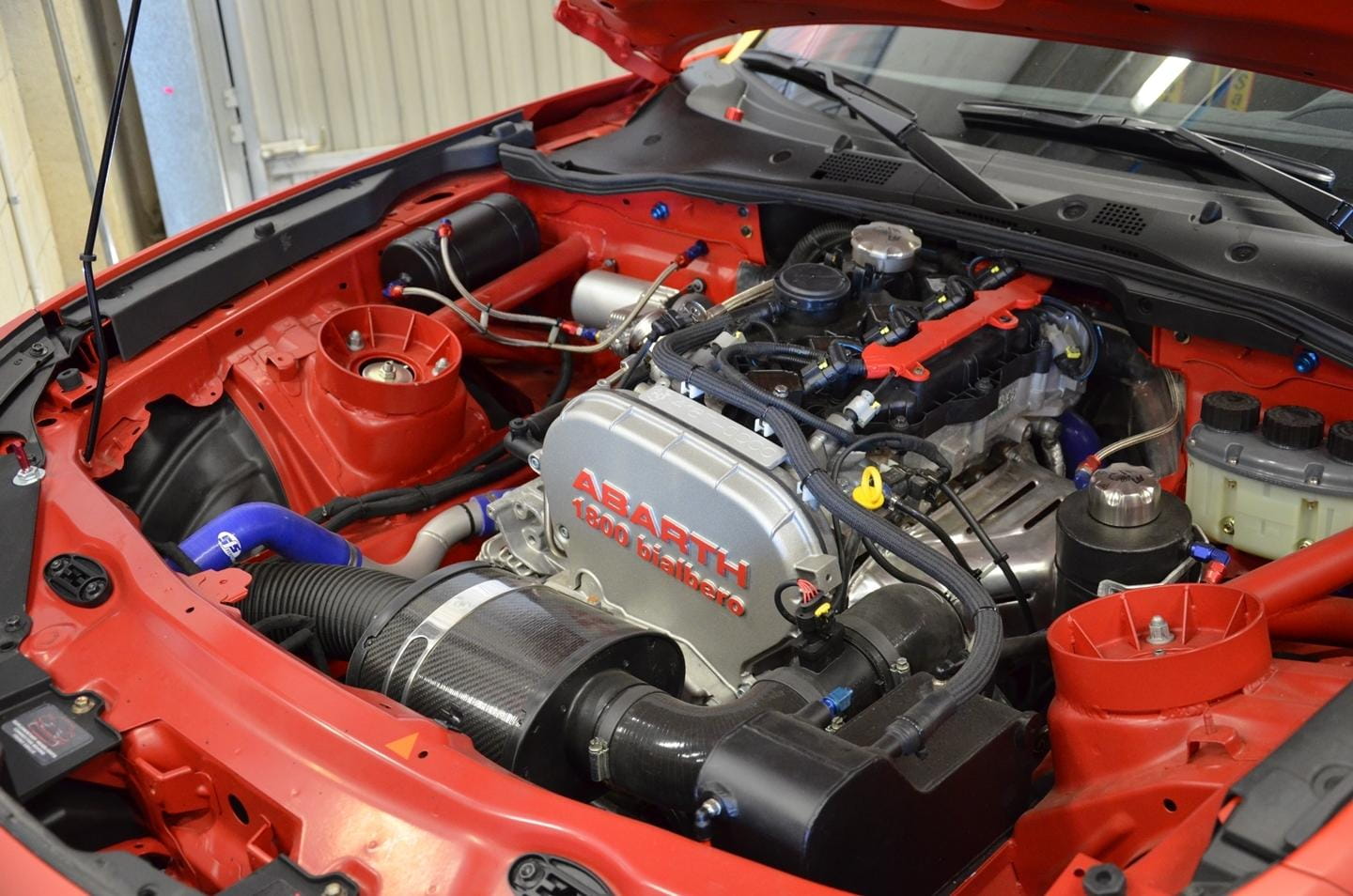 Sentado en el coche y a la espera de que nos den paso en el pitlane, el trabajo de Abarth se hace notar con un especial cuidado en el uso de materiales y una configuración bastante más agresiva que sus hermanos. Sólo con encender su motor queda patente que el espíritu del Abarth 124 Spider es el de un deportivo de raza, y es que el espectacular sonido del escape Record Monza no deja a nadie indiferente, siendo además una de las señas más identificativas de Abarth.